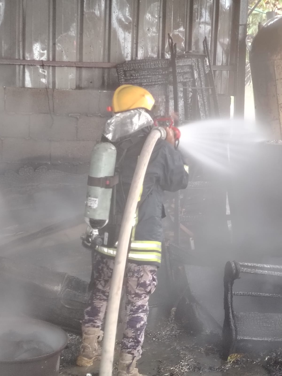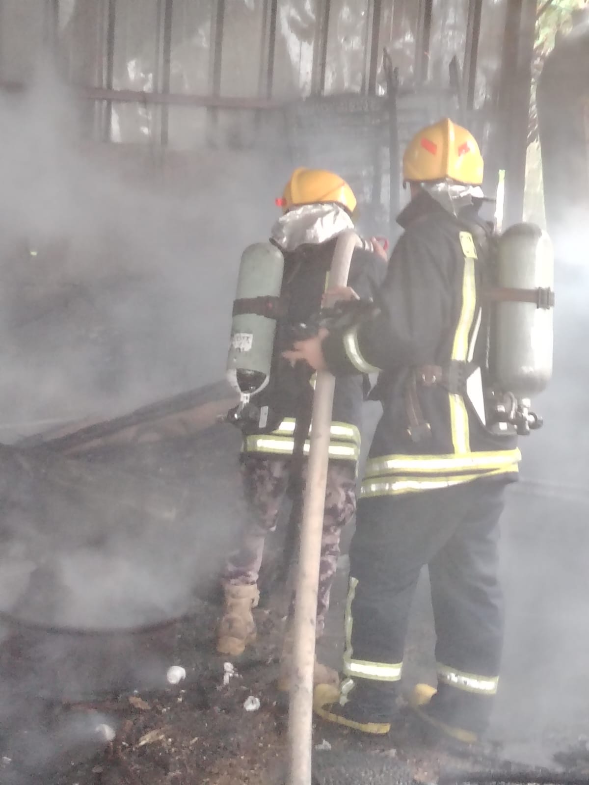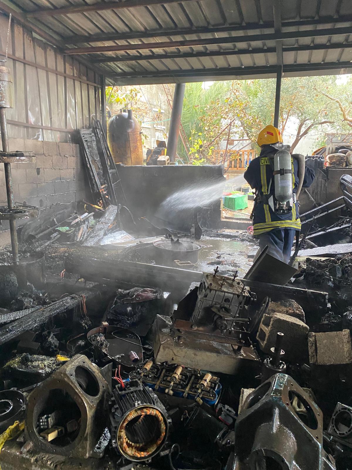 عملت الطواقم على إخماد النيران التي كانت مشتعلة داخل مشغل الحدادة وتمت محاصرة النيران وعزل المناطق الآمنة عن المشتعلة وإخمادها وتأمين المكان والتأكد من عدم تجدد الحريق إضافة لتفقد الموقع .