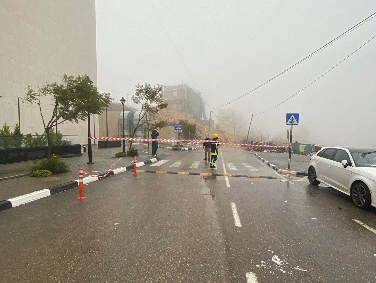 أزالت وأمنت طواقمنا في مديرية محافظة رام الله والبيرة اليوم الجمعة 09/01/2026 ، ألواح زجاج سقطت من أحد المجمعت التجارية في بلدة سردا شمال المحافظة .