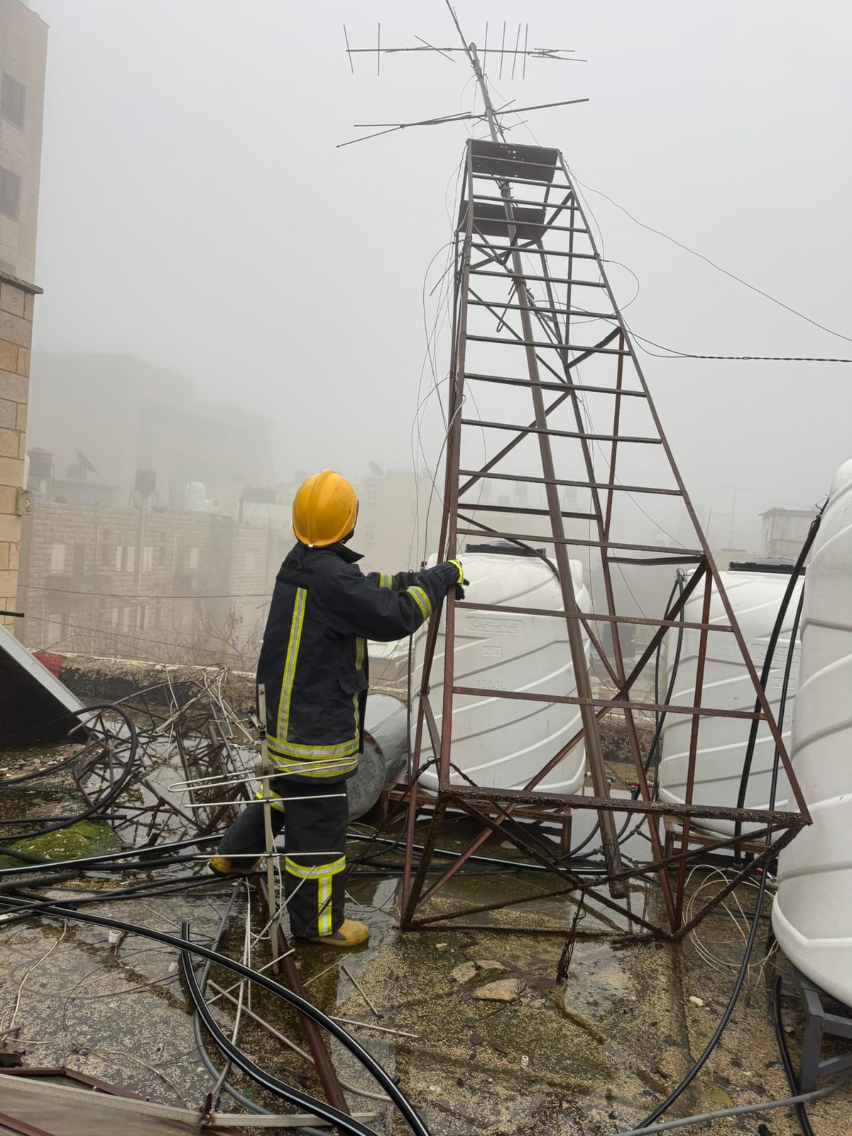 أزالت طواقمنا في مديرية محافظة رام الله والبيرة اليوم الجمعة 09/01/2026 ، برج إشارة تلفاز عن سطح منزل بحي رام الله التحتا في مدينة رام الله كان آيل للسقوط نتيجة التأثر بالمنخفض الجوي .