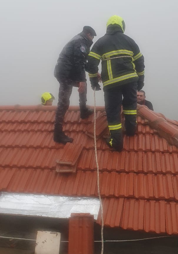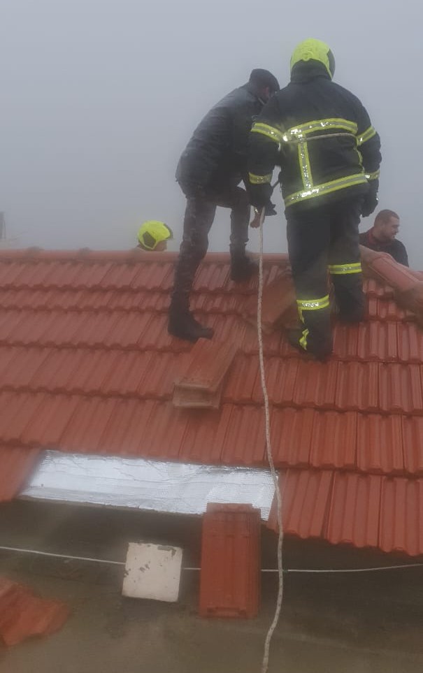 عملت الطواقم على إزالة الواح القرميد ووضعه على سطح المنزل وتثبيته لضمان عدم سقوطه عن المنزل حرصاً على سلامة المواطنين ورفع الضرر وحماية للممتلكات .