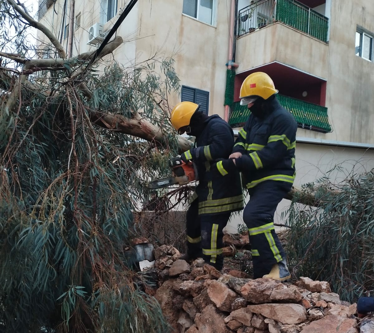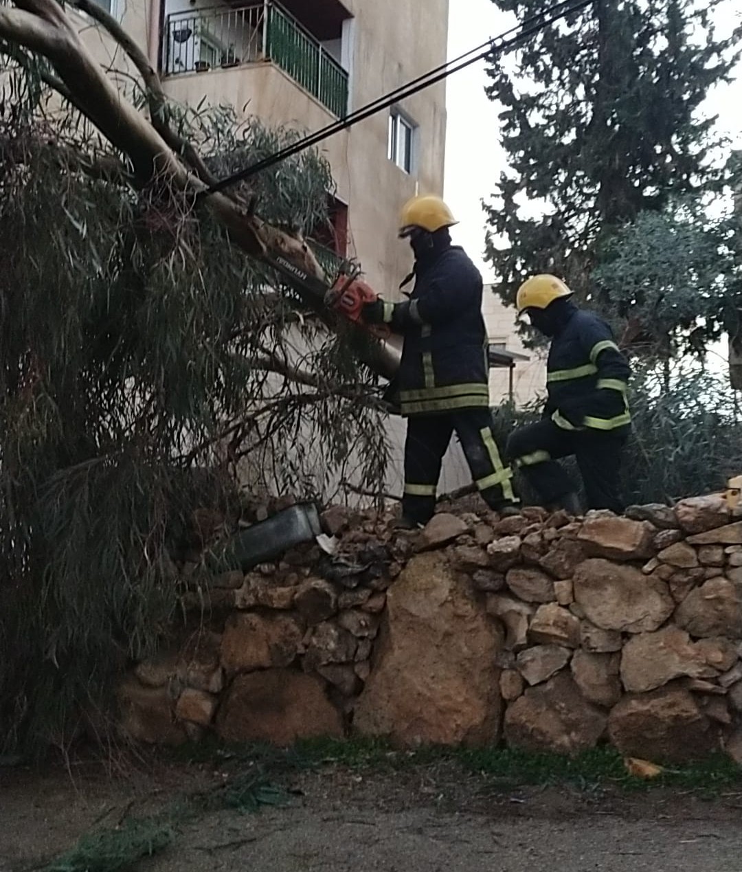 عملت الطواقم على ازالتها عن شبكة الإتصالات وفتح الطريق امام المارة والمركبات حرصاً على سلامة المواطنين ورفع الضرر .