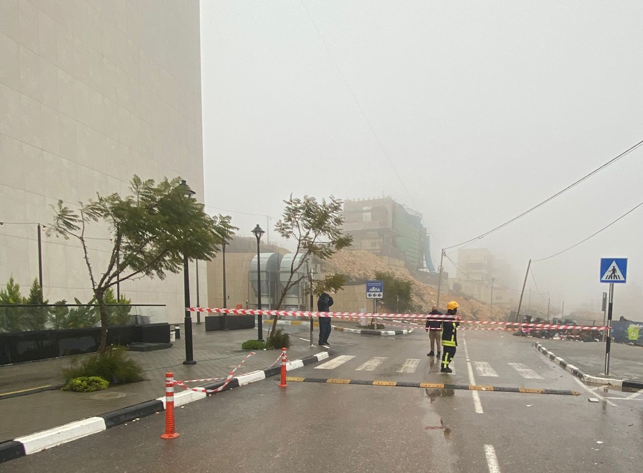 تأمين موقع إنهيار جزء من الشارع الرئيس في حي عين مصباح بمدينة رام الله .