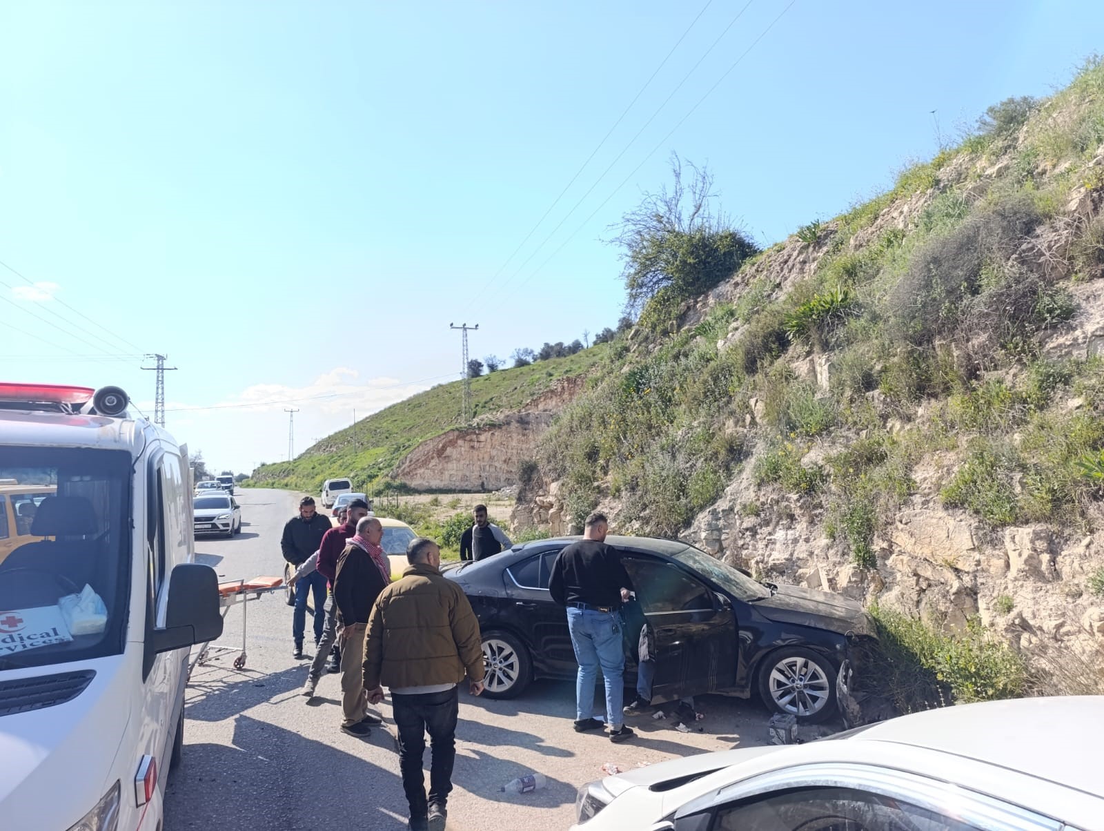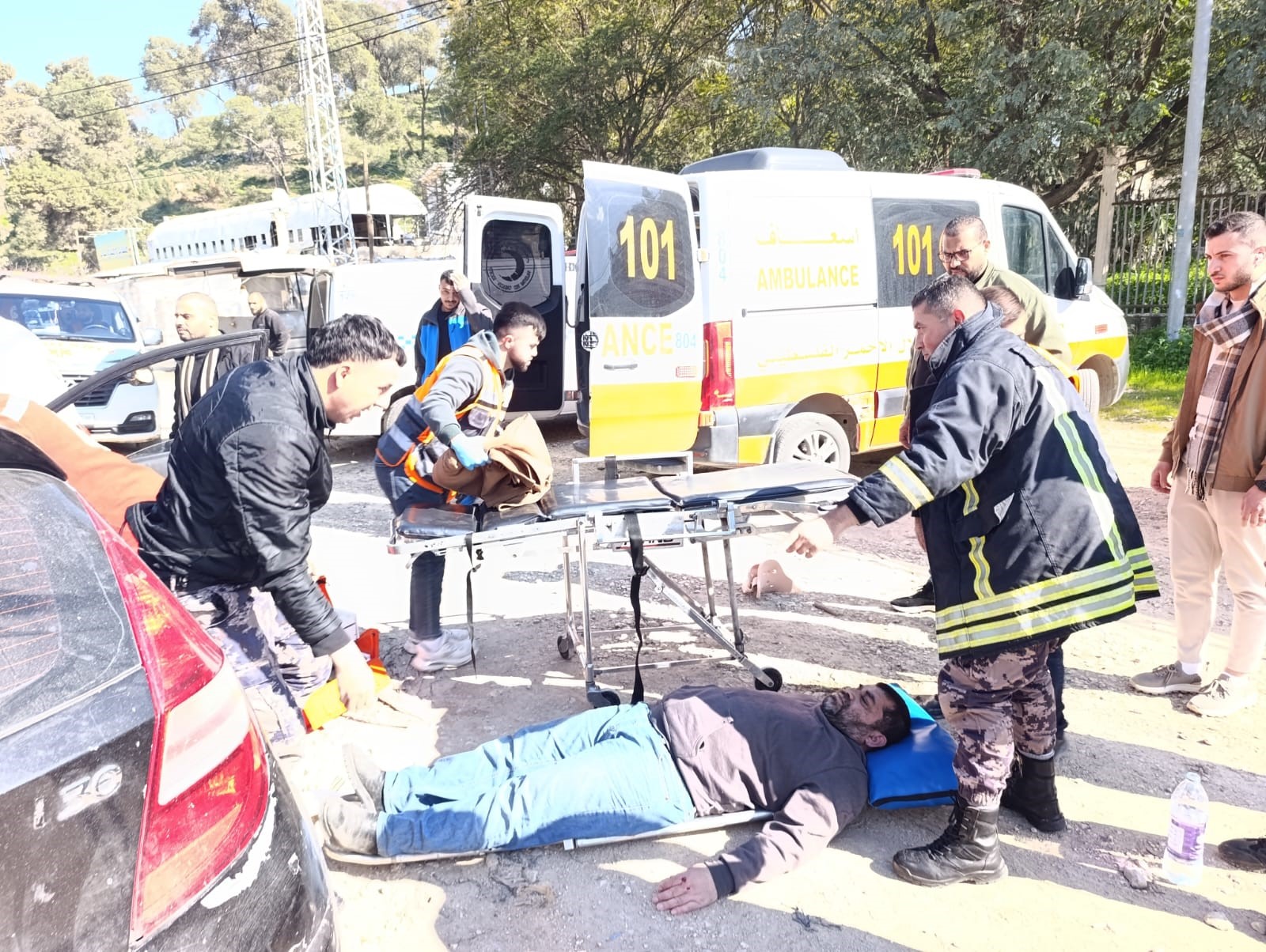 أخلت طواقمنا في مديرية محافظة جنين مساء اليوم الإثنين 02/03/2026 ، خمسة إصابات من حادث سير إنحراف مركبة ما أدى لإصطدامها جانب الطريق القرب من المدخل الجنوبي للمدينة قرب منتزه جنات بالمحافظة .