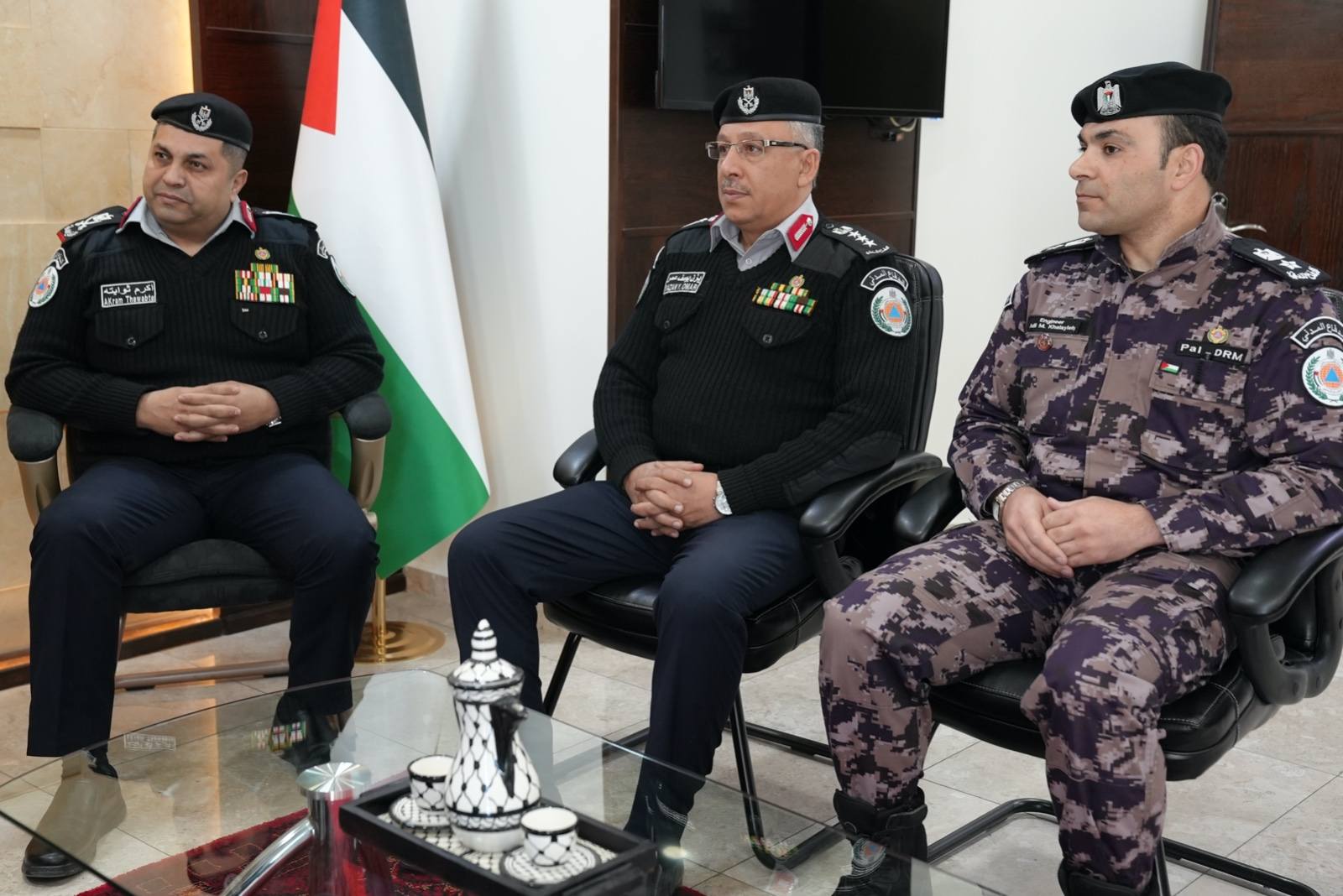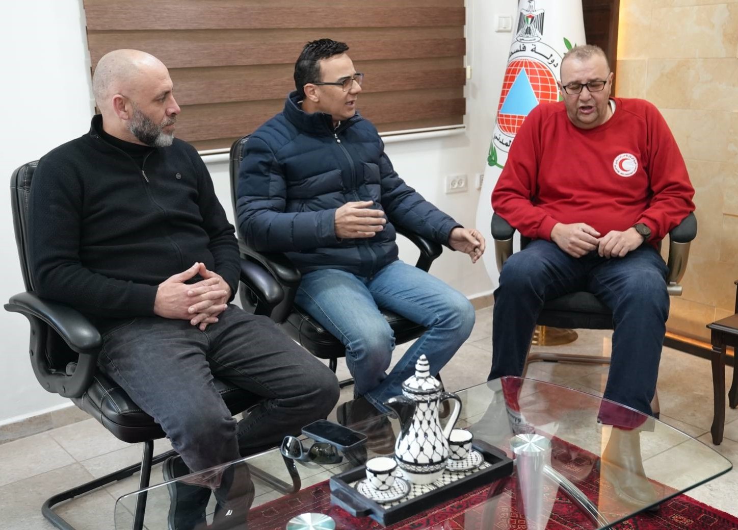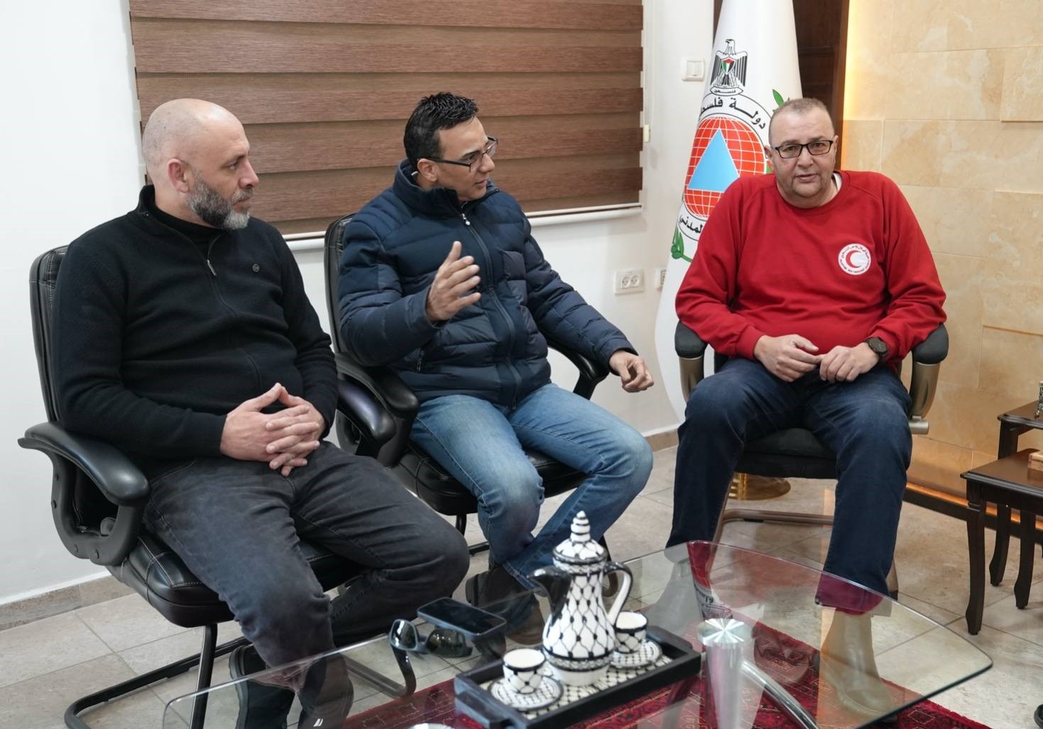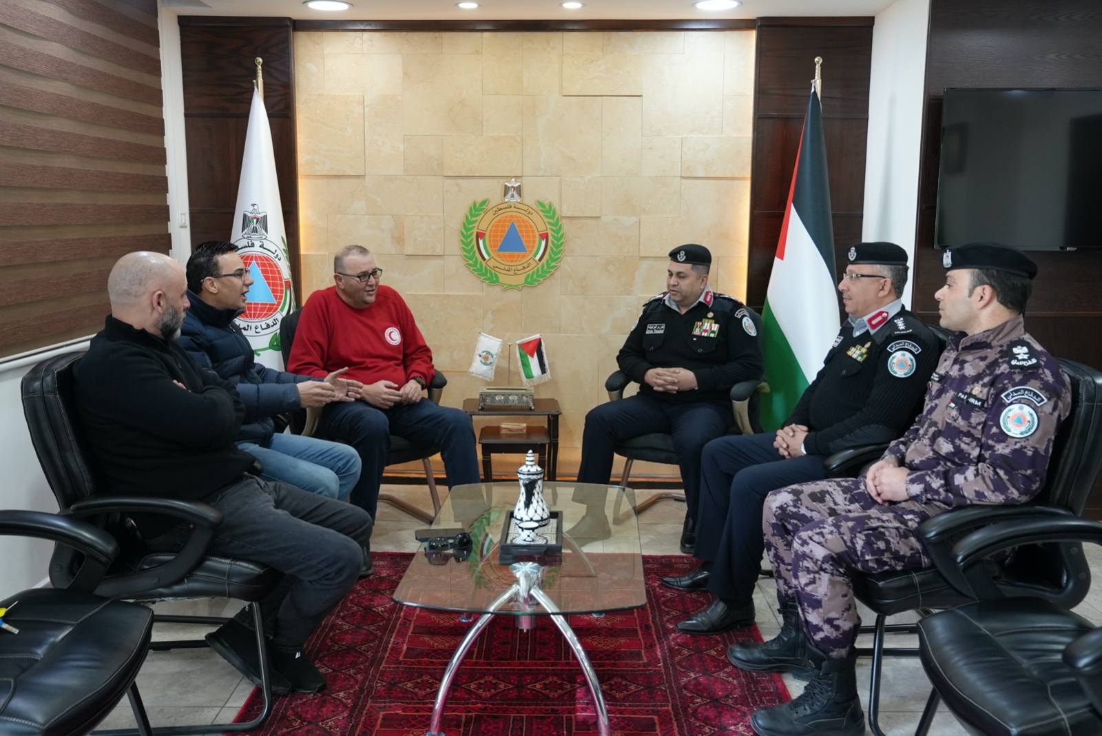 أستقبل مدير عام الدفاع المدني اللواء ركن أكرم ثوابتة اليوم الخميس 05/03/2026 بمكتبه ، وفداً من جمعية الهلال الأحمر الفلسطيني برئاسة مديرها العام خالد أبو غوش ، إلى جانب ممثلين عن الاتحاد الفلسطيني لرياضة السيارات والدفع الرباعي بحضور عبد الله الشعراوي ومحمد نزال ، وذلك في إطار تعزيز التعاون المشترك وتنسيق الجهود بين العاملين بحقل الطوارئ.