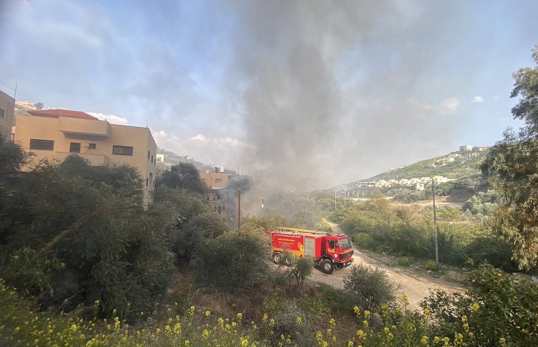 عملت الطواقم بجهد متواصل لعدة ساعات من بعد ظهر اليوم إلى ما بعد المغرب على إخماد النيران واللسنة اللهب التي إمتدت لمساحات واسعة فتم حماية مئات الأشجار المثمرة وممتلكات المواطنين والأراضي الزراعية القريبة .