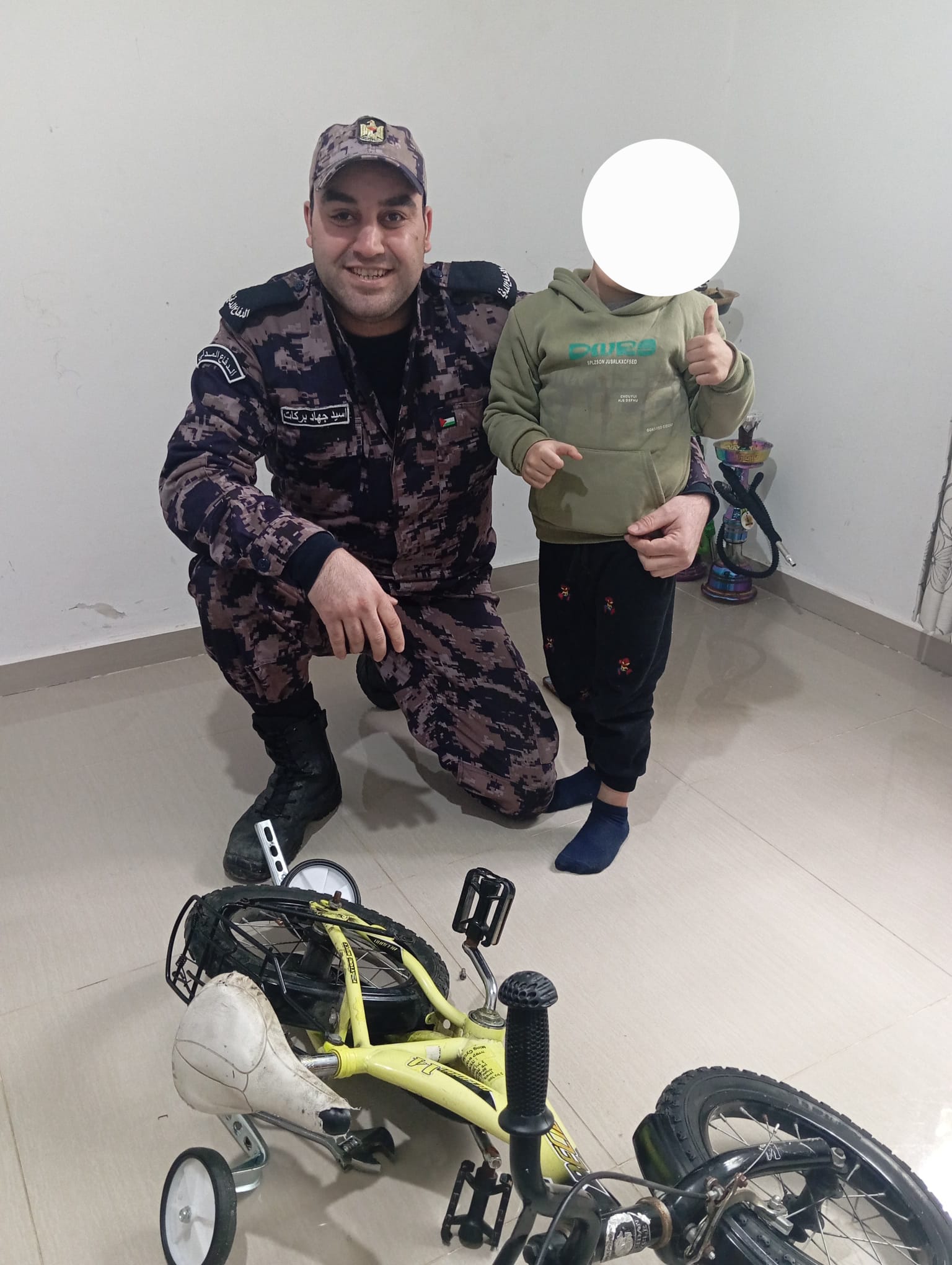 عملت الطواقم على تأمين الطفل وتحرير القدم من داخل قضبان الدراجة الهوائية دون التسبب له بأذى أو إصابة مستخدمين معدات تقنية مخصصة .