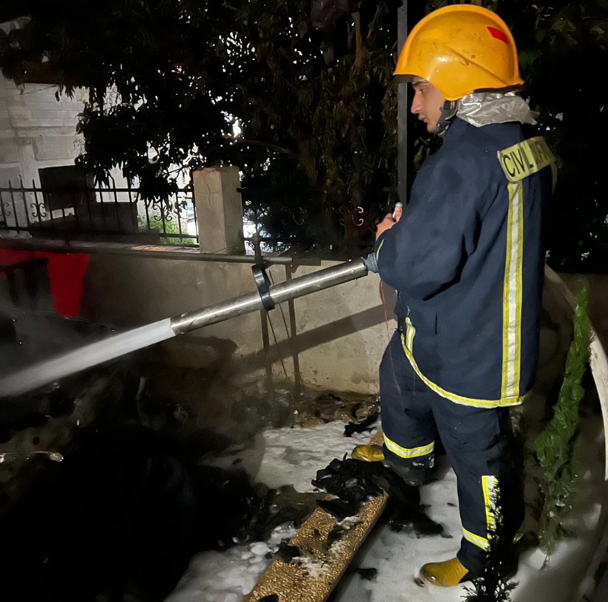 أخمدت طواقمنا في محافظة طولكرم فجر اليوم الإثنين 06/04/2026 ، حريق مركبة في ضاحية ذنابة بالمدينة في المحافظة .