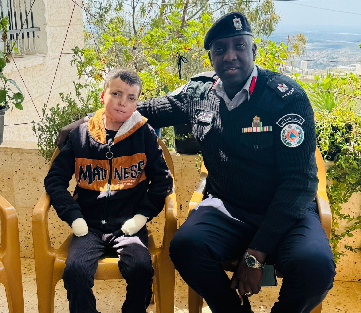 استجابةً لطلب إنساني ، لبّى ضباط الدفاع المدني في مركز دورا بمحافظة الخليل رغبة طفل من ذوي الاحتياجات الخاصة وأمنيته بلقاء الطواقم والتعرّف على طبيعة عملهم عن قرب .