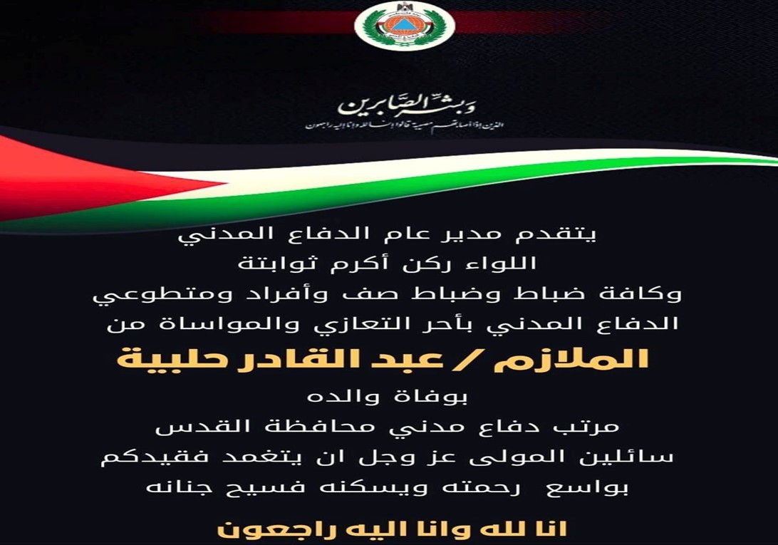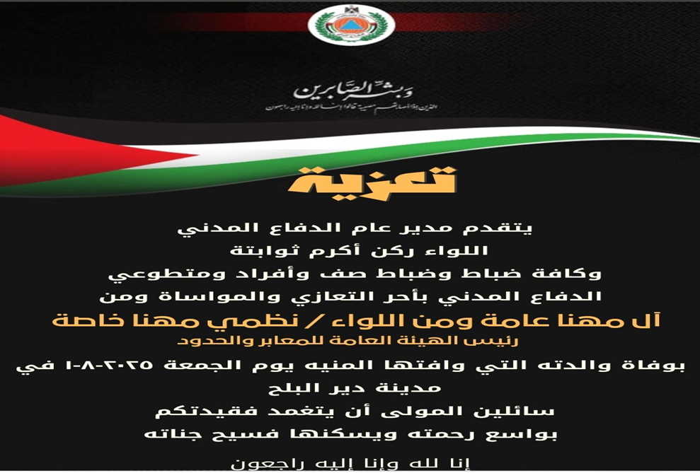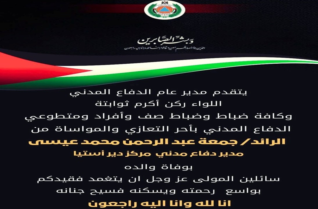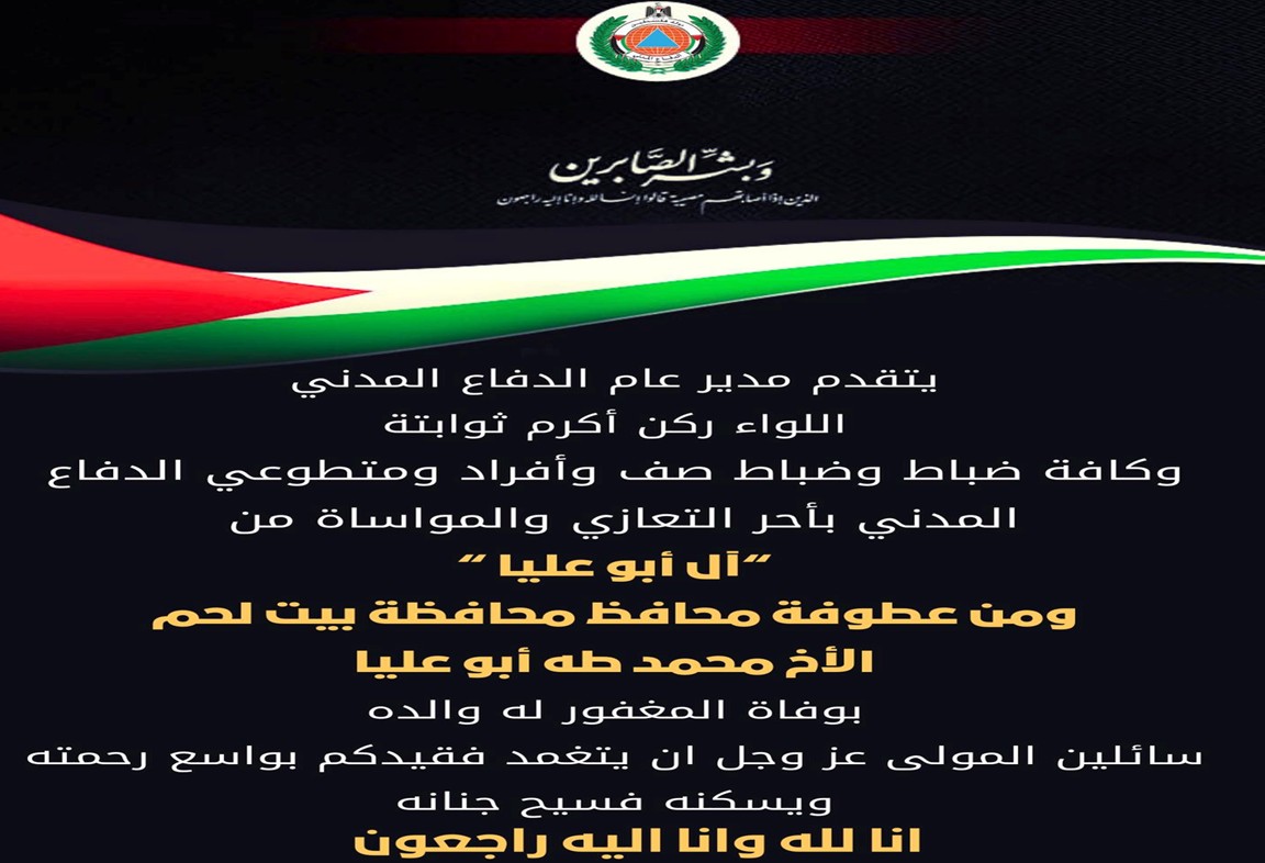 يتقدم مدير عام الدفاع المدني اللواء ركن أكرم ثوابتة وكافة ضباط وضباط صف وأفراد ومتطوعي... المزيد