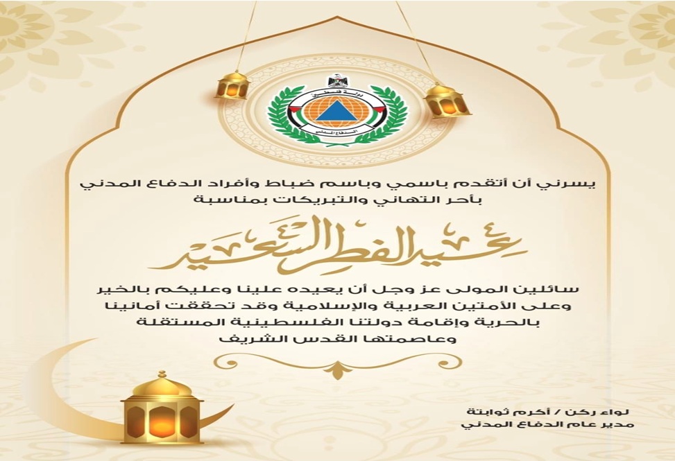 أبرق مدير عام الدفاع المدني اللواء ركن أكرم ثوابتة برقية تهنئة وتبريك بحلول عيد الفطر... المزيد