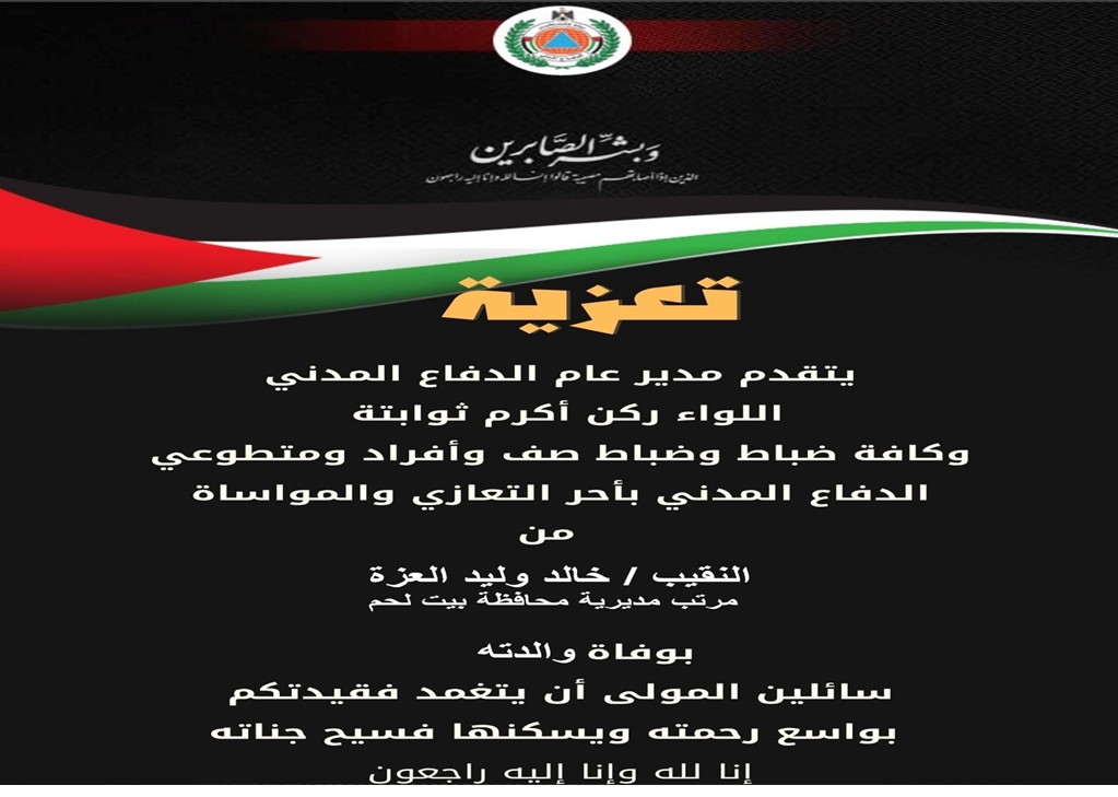يتقدم مدير عام الدفاع المدني اللواء ركن أكرم ثوابتة وكافة ضباط وضباط صف وأفراد ومتطوعي... المزيد