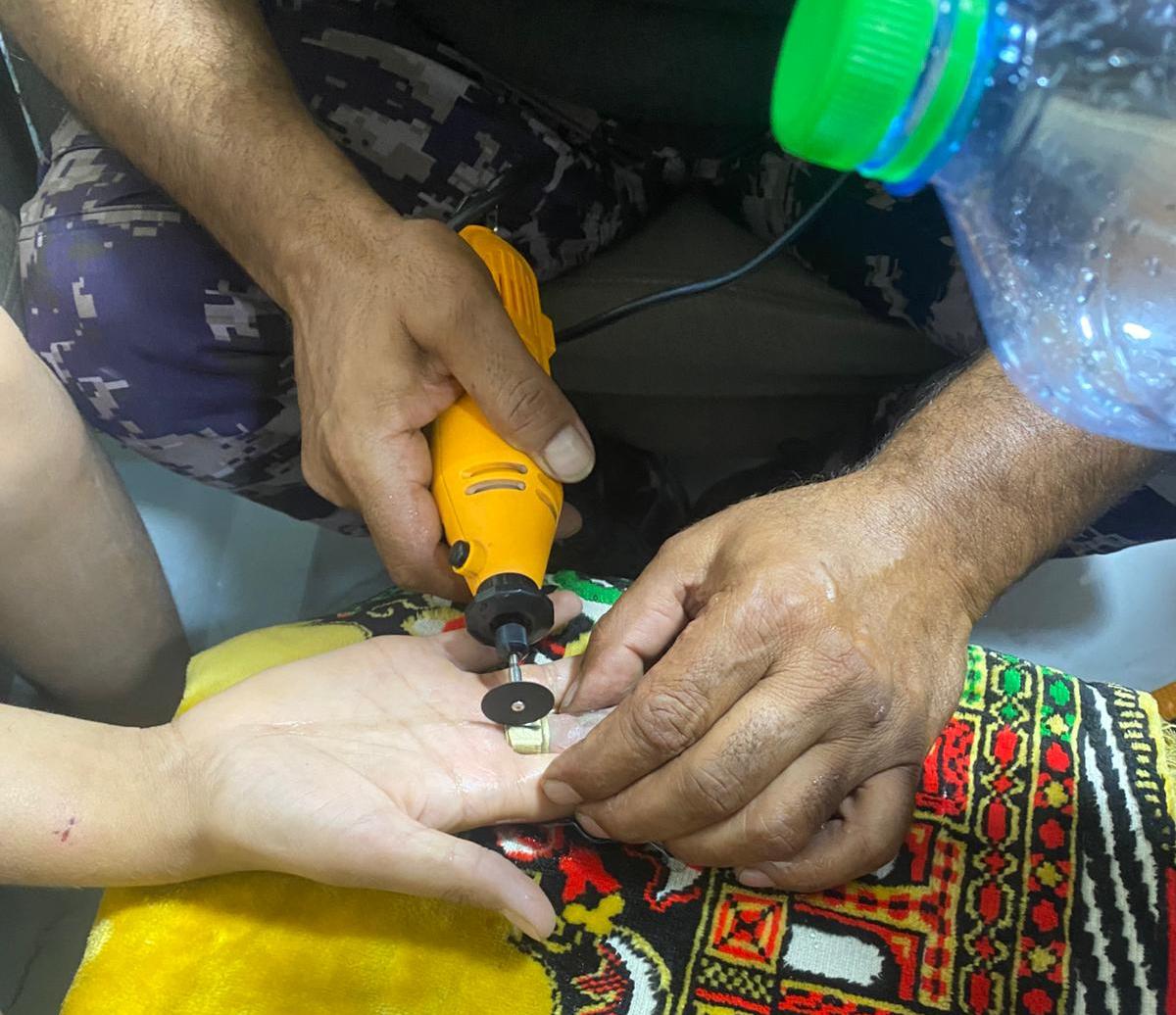 إزالة حلقة معدنية من يد فتى في بيت لحم