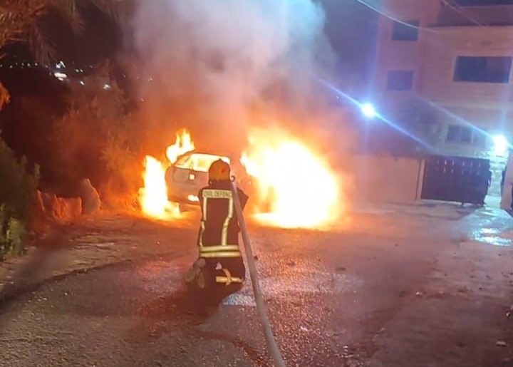 إخماد حريق مركبة في بلدة قفين شمال طولكرم