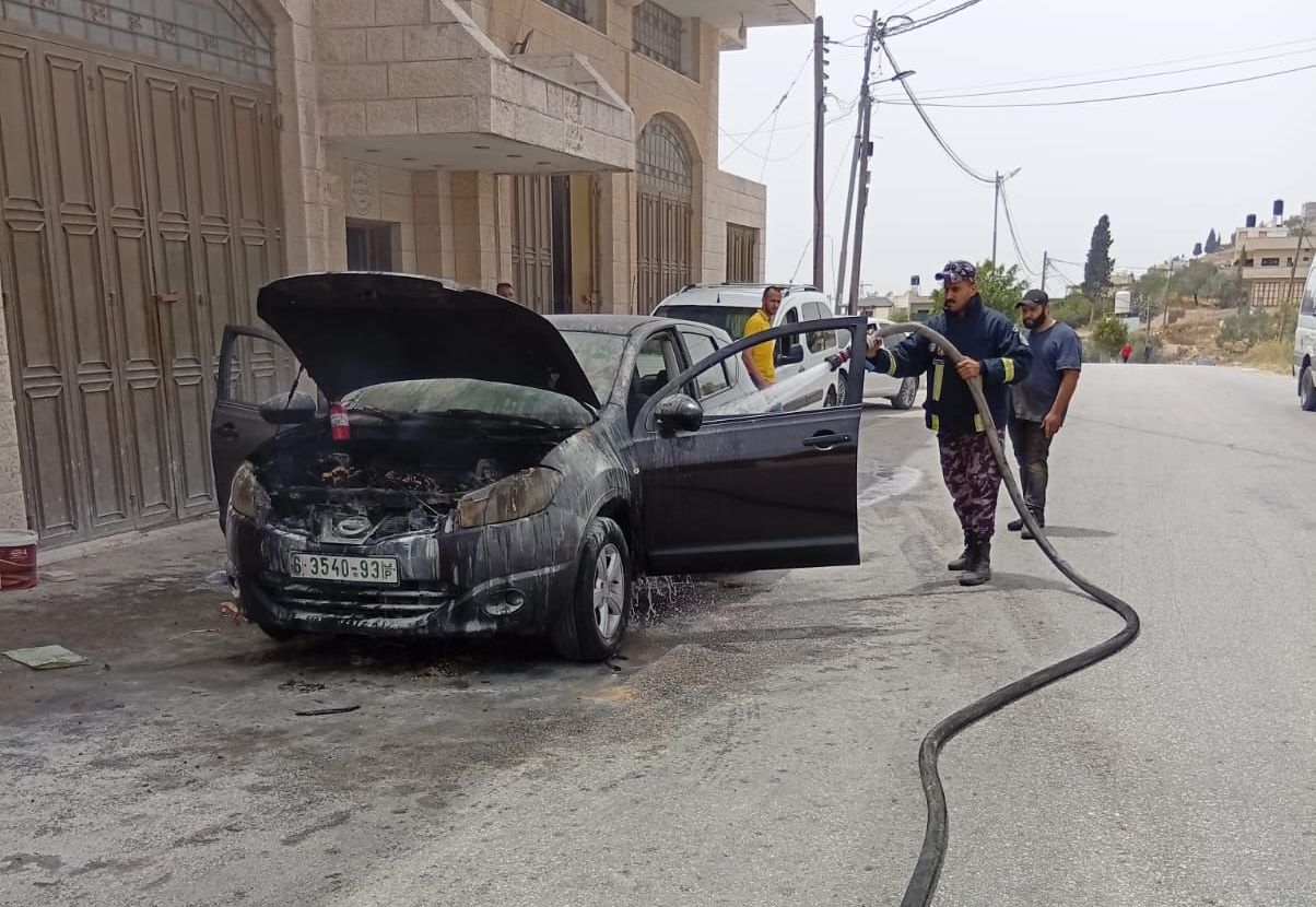إخماد حريق مركبة في بلدة بزاريا شرق طولكرم