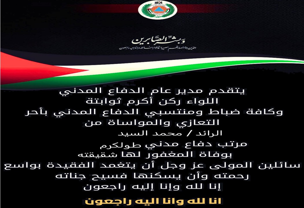 يتقدم مدير عام الدفاع المدني اللواء ركن أكرم ثوابتة وكافة ضباط وضباط صف وأفراد ومتطوعي... المزيد