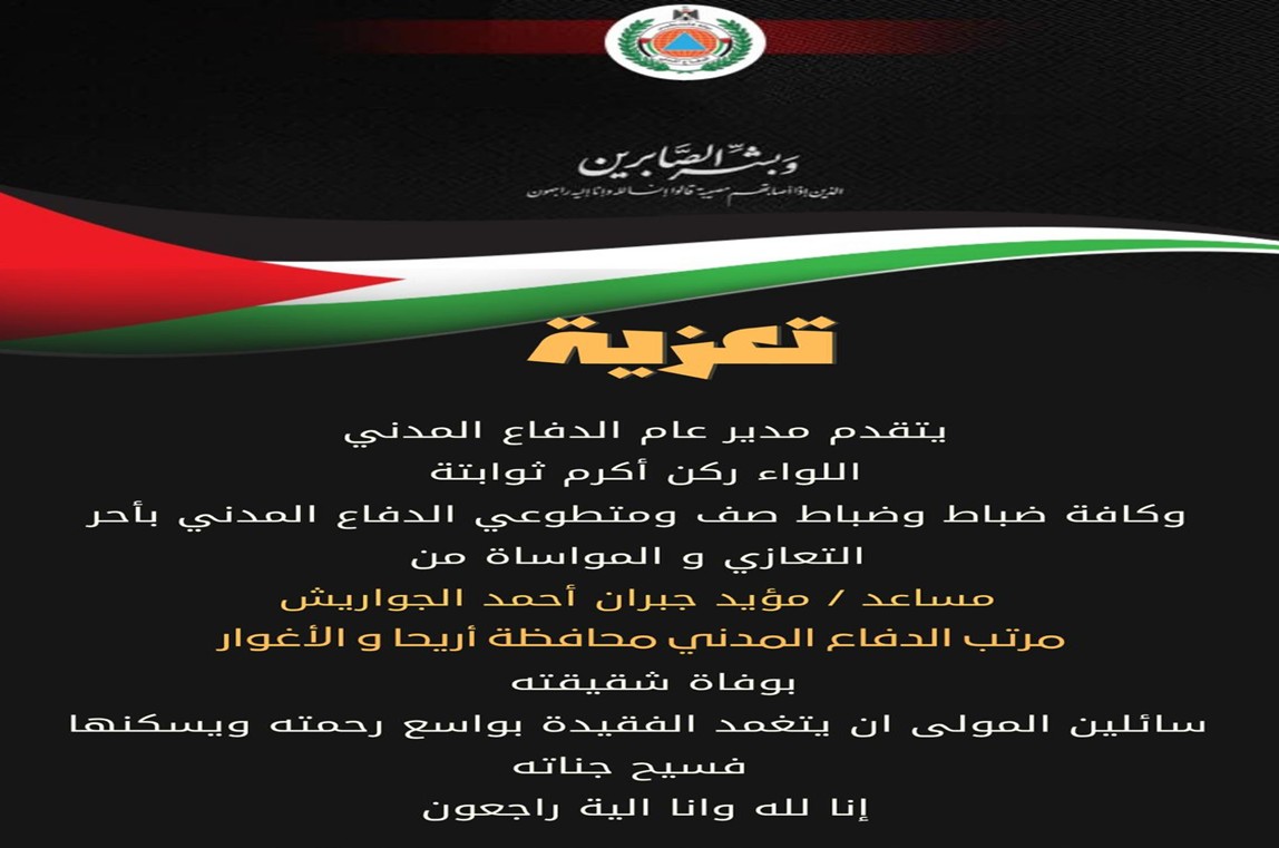 يتقدم مدير عام الدفاع المدني اللواء ركن أكرم ثوابتة وكافة ضباط وضباط صف وأفراد ومتطوعي... المزيد