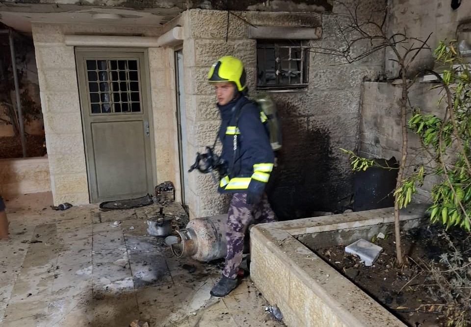 السيطرة على حالة إنفجار إسطوانة غاز بساحة أحد المنزل في حي سنجر جنوب الخليل