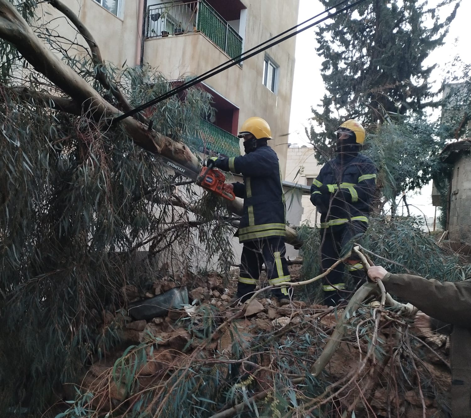 إزالة شجرة سقطت على شبكة إتصالات في بلدة العبيدية شرق بيت لحم