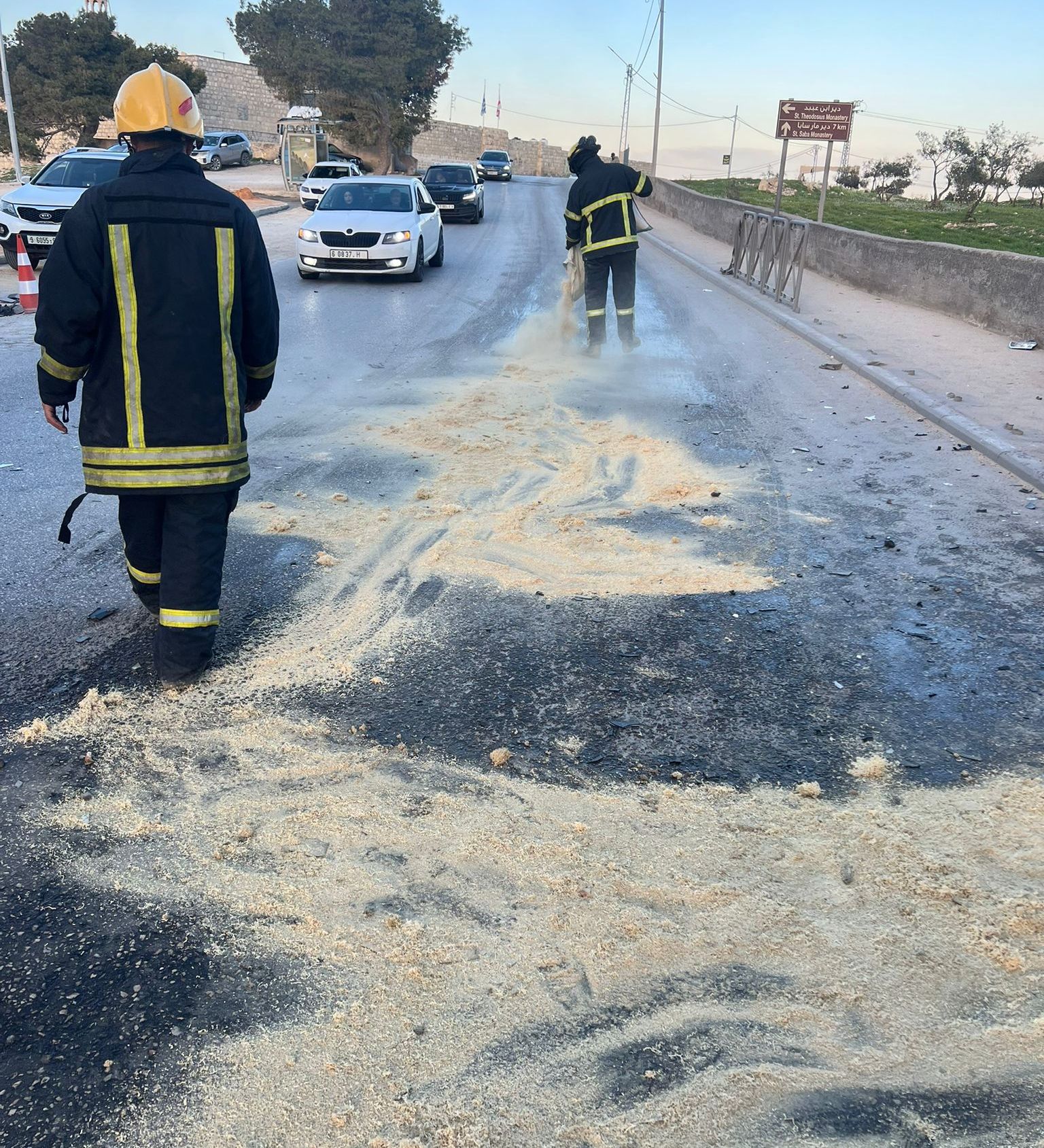 عملت الطواقم جنباً إلى جنب مع طواقم الإسعاف على إخلاء الإصابة من داخل المركبة وتقديم الإسعاف الأولي لها وتأمينها لطواقم ومركبة الإسعاف ومن ثم القيام بتأمين المركبات وحركة السير على الطريق أصولاً بعد إزالة الزيوت عن الشارع ومن موقع الحادث .