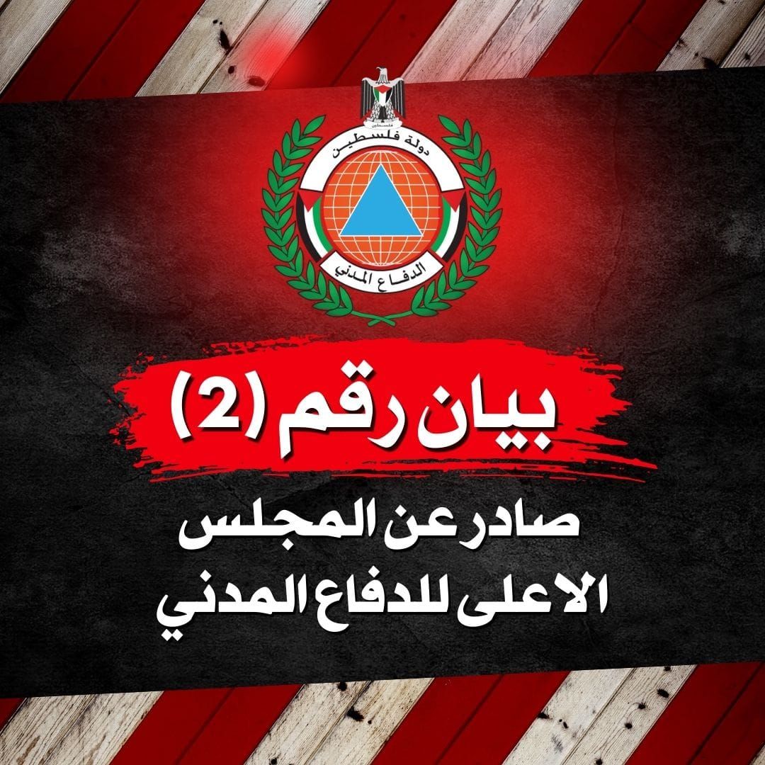بيان رقم ٢ من المجلس الأعلى للدفاع المدني حول توجيهات الحكومة الفلسطينية