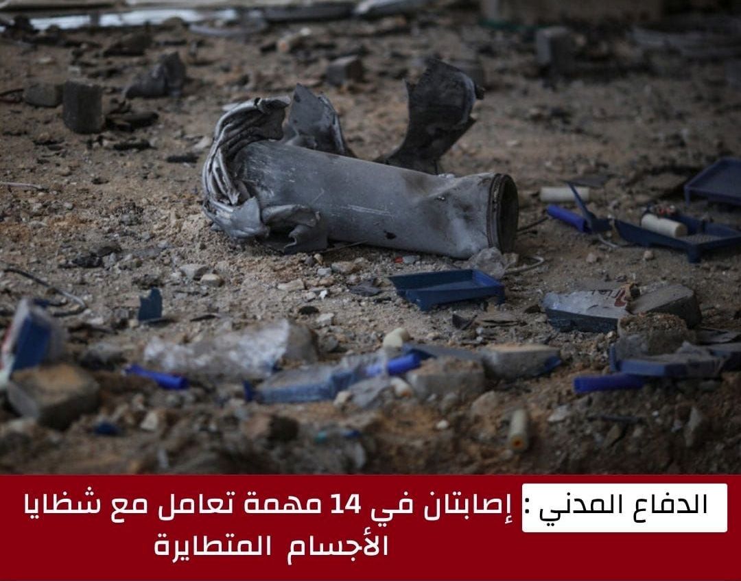 إصابتان في 14 مهمة تعامل مع شظايا الأجسام المتطايرة