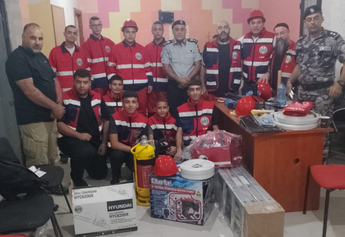 وعليه تم تسليمهم عدد من المعدات اليدوية الخاصة بمكافحة الحرائق وعمليات الإنقاذ ونقل المصابين حرصاً على سلامة وحماية المواطنين وممتلكاتهم .