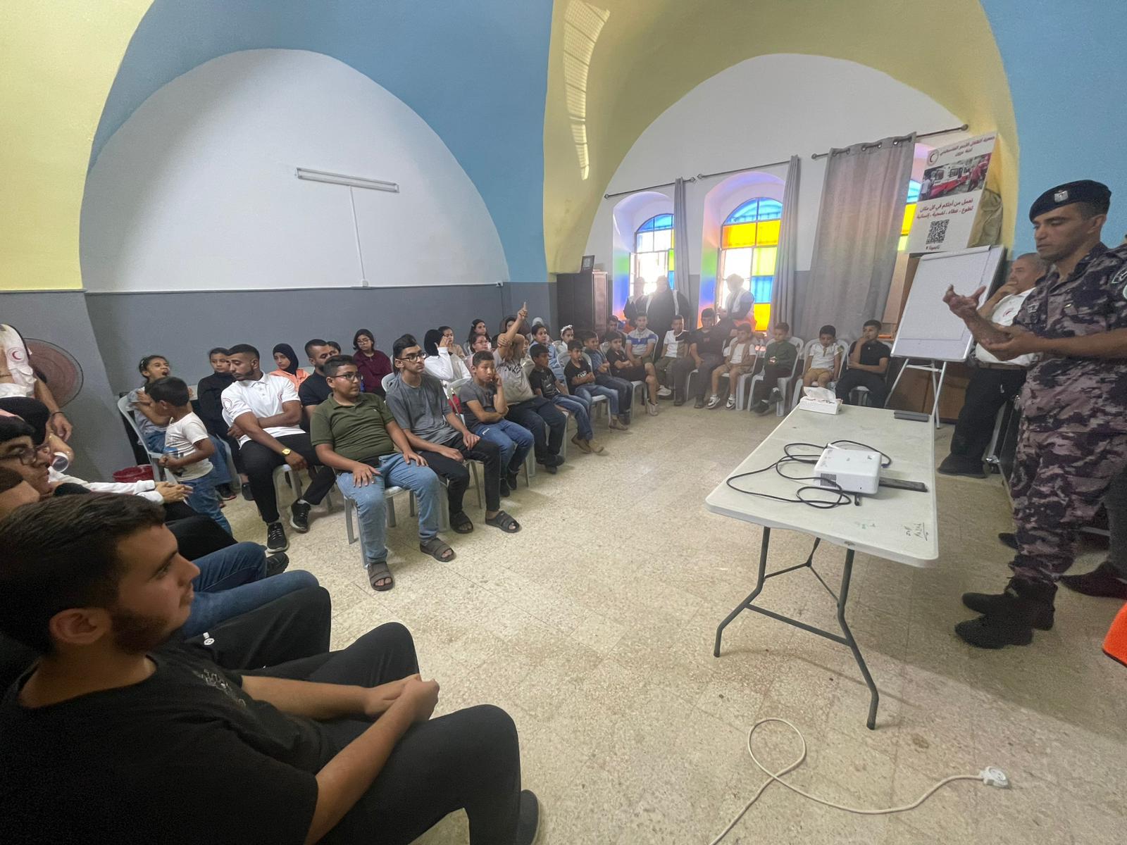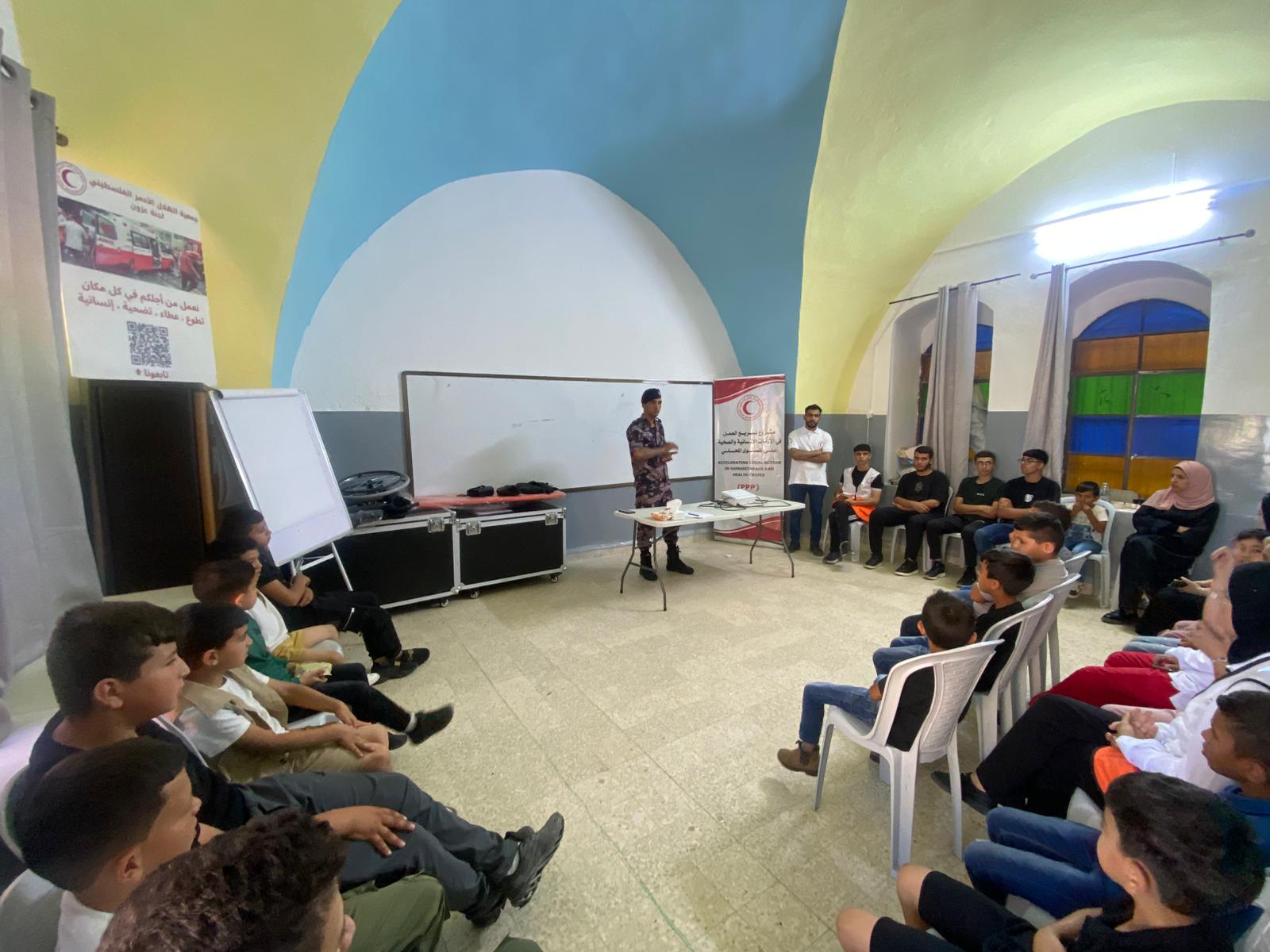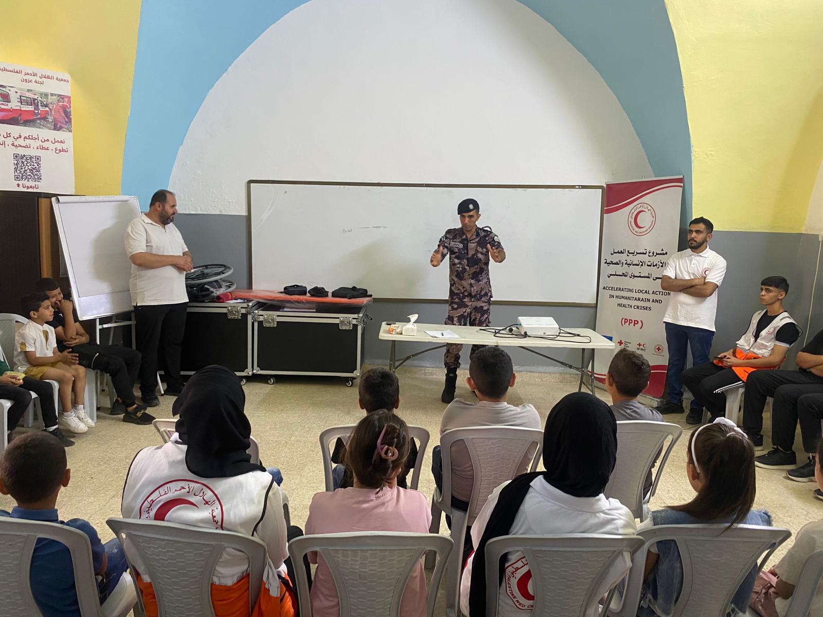 تم خلالها الشرح عن كيفية استخدام اسطوانات الاطفاء اليدوية وكيفية التصرف الصحيح والسليم وخاصة كيفية الاحتماء عند سقوط الاجسام المتساقطة جراء الأحداث الحالية وعن خطورة العبث ببقايا هذه الأجسام وضرورة عدم الاقتراب منها والاتصال على الدفاع المدني أو جهات الاختصاص .