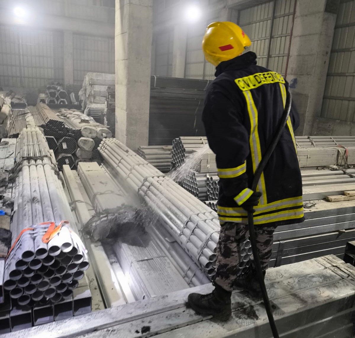 وتخلل برنامج التدريب علوم الدفاع المدني النظرية والعملية والوقاية والسلامة العامة وإجراءاتها في المباني والمرافق بالإضافة إلى توضيح أماكن الأمان عند وقوع الهزات الأرضية والحديث حول الإخلاء الصحيح والسليم ، إضافة إلى التطبيق العملي على معدات الدفاع واستخدام اسطوانة الإطفاء اليدوية ورفع الجاهزية في حالات الطوارئ .