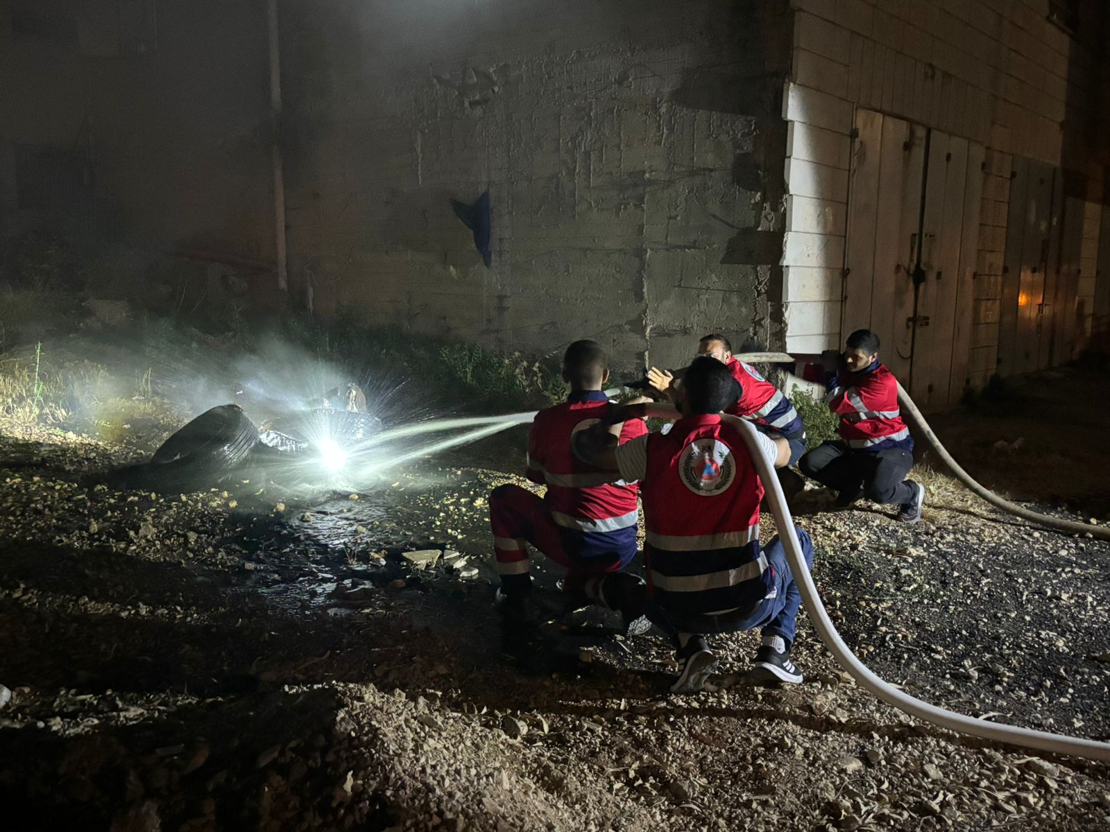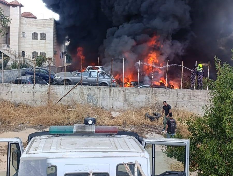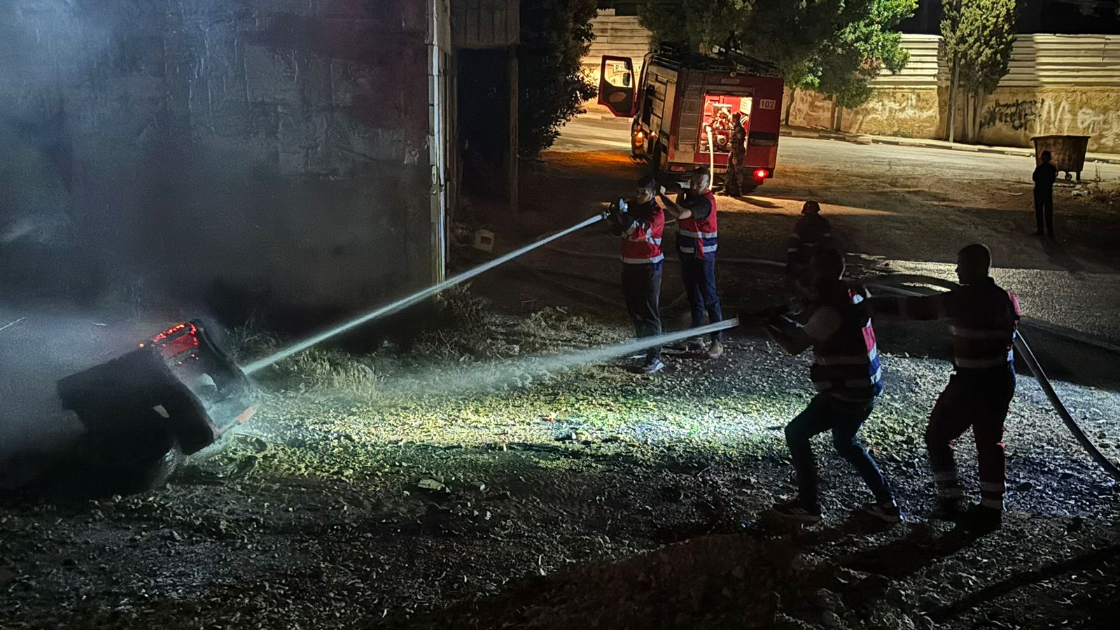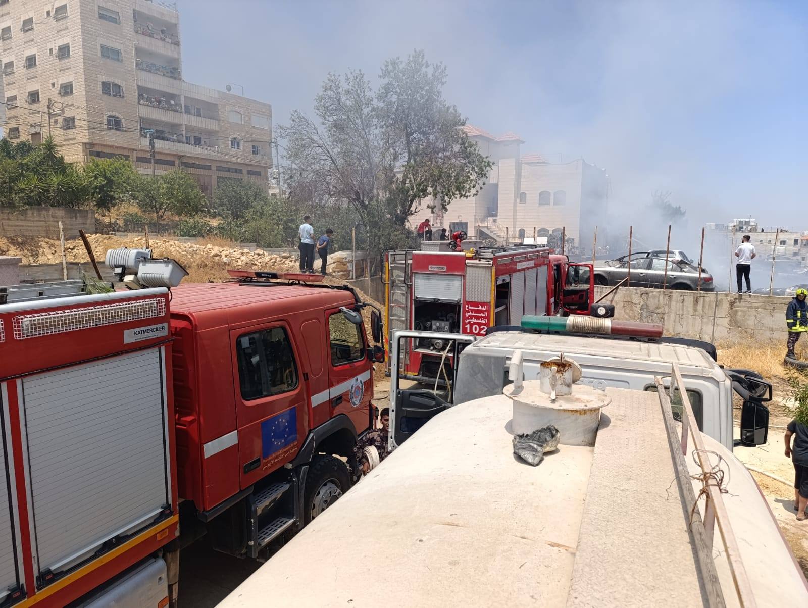 قامت طواقمنا من وحدة دعم وإسناد الجنوب ومراكز بيت أولا ودورا ومساندة الأهالي وطواقم بلدية حلحول بإخماد النيران التي نشبت بإحدى مشاطب المركبات ، فإندلعت وطالت النيران عدد من المركبات وقطع الغيار للمركبات وممتلكات وأغراض مستعملة وعملت الطواقم بآلياتها وطواقمها على الحد من إنتشار النيران والحريق ومنع وصولها إلى الممتلكات المجاورة والحد من إتساع مساحتها ومحاصرتها عن طريق التبريد والعزل والتمكن من السيطرة عليها ومنع وصول السنة اللهب الى المركبات وإنقاذ عشرات المركبات الأخرى .