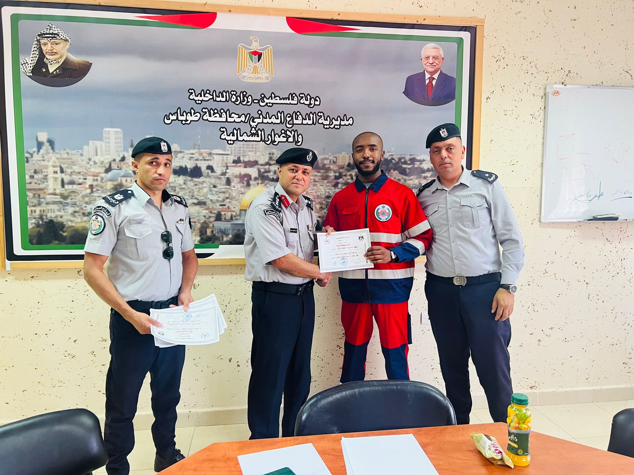 أكد ممثل الدفاع المدني في الاجتماع مقدم مهندس أسامة بني عودة على الجاهزية الكاملة للطواقم على مدار الساعة، تنفيذًا لتعليمات مدير عام الدفاع المدني برفع مستوى الجهوزية في كافة المحافظات ، كما تم استعراض تدخلات الطواقم الميدانية في التعامل مع البلاغات الواردة بشأن شظايا المقذوفات التي سقطت في مدينة وقرى المحافظة .