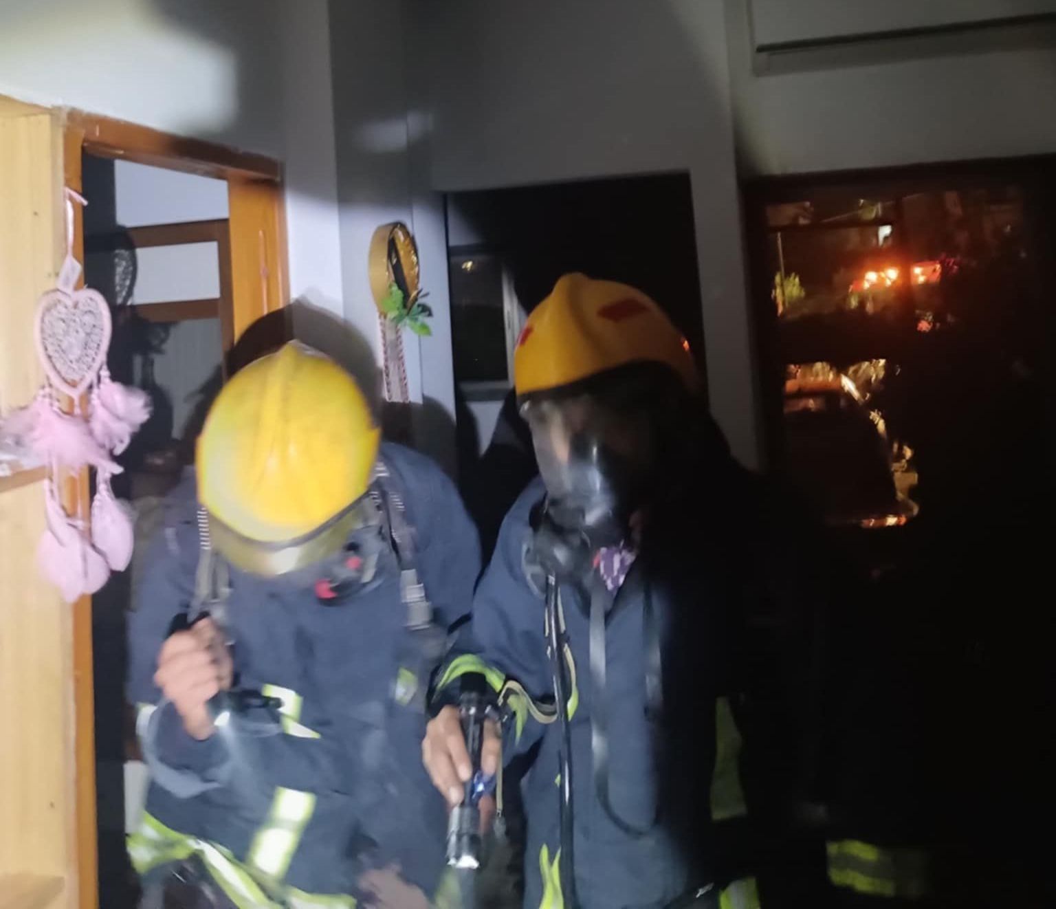 قامت الطواقم بإخلاء سكان المنزل وتأمينهم وإخماد النيران وحصرها داخل المنزل المذكور والعمل على فصل الكهرباء عن المنزل وتهوية المكان وتبريد مكان الحريق وحصر الأضرار بالإضافة إلى تأثر المنزل بالسناج ومنع وصول النيران إلى باقي الممتلكات .