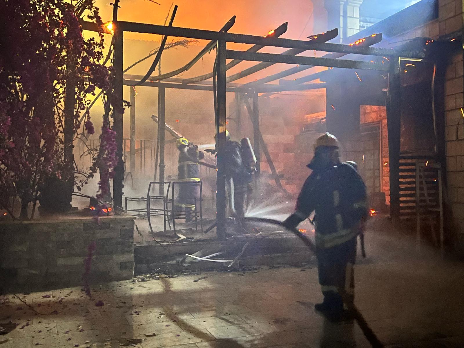 إخماد حريق ثلاثة منازل “شاليهات” في بلدة طلوزة شمال نابلس .