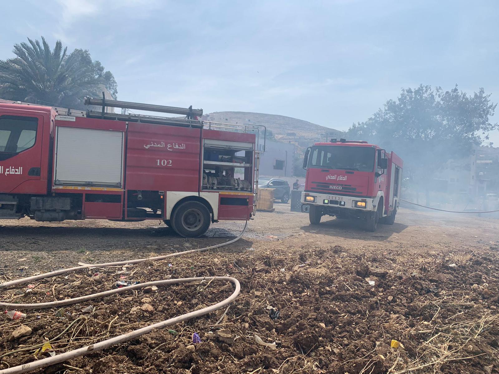 إخماد حريق مخزن أدوات زراعية في بلدة بردلا بالأغوار الشمالية .