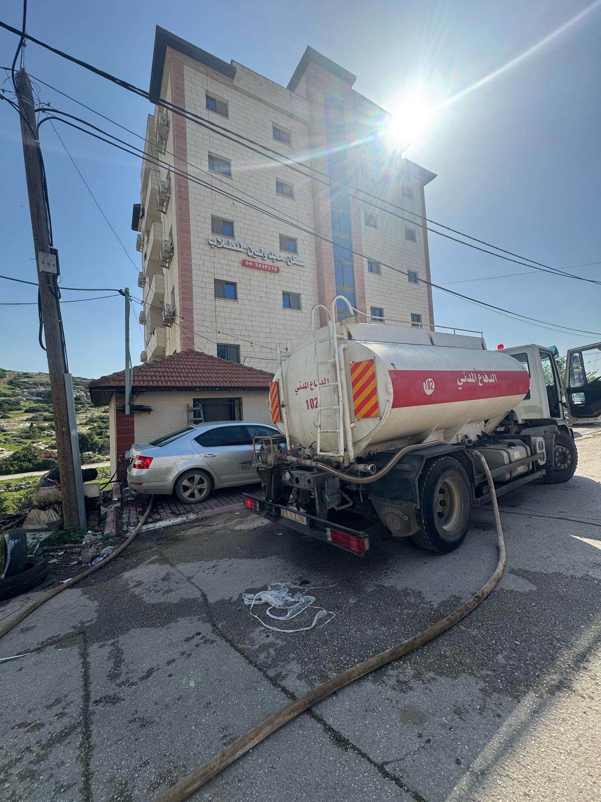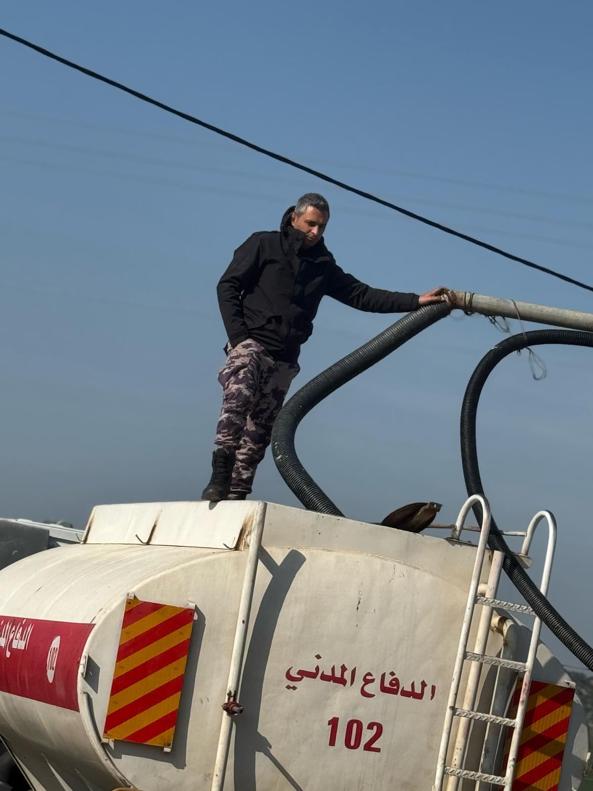 تزويد مركز إيواء نازحين بالمياه في إسكانات الجامعة العربية الأمريكية بجنين .
