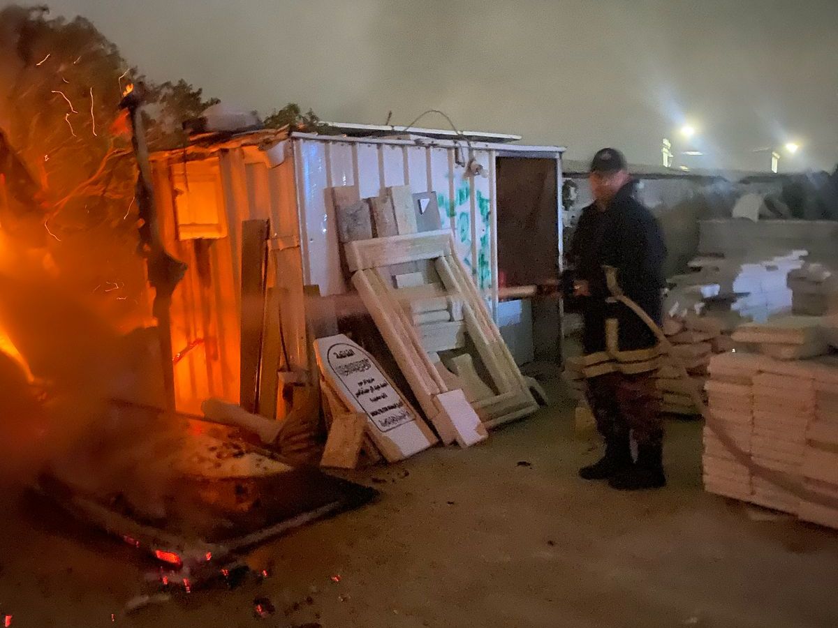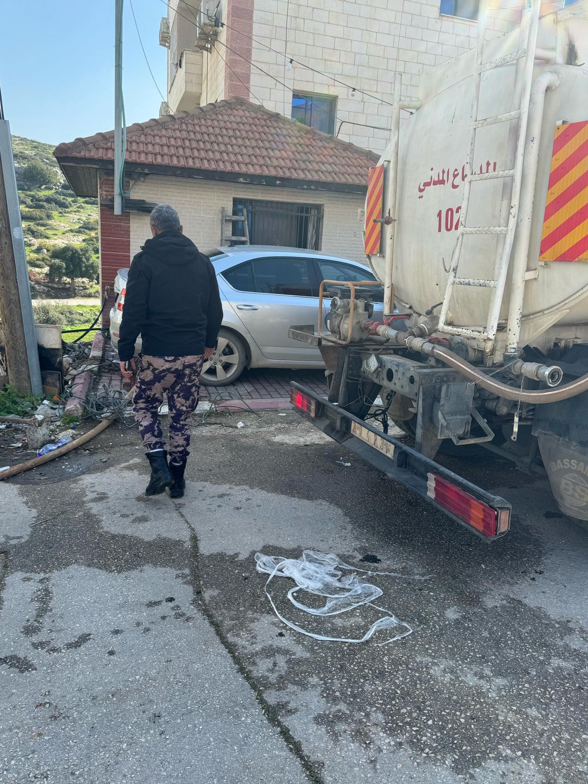 إخماد حريق مركبة في محافظة طولكرم .