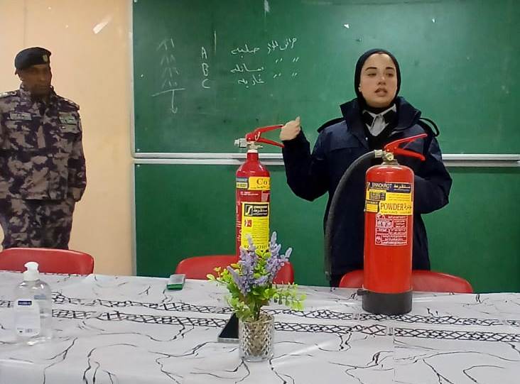وتخلل برنامج التدريب علوم الدفاع المدني النظرية والعملية والوقاية والسلامة العامة وإجراءاتها في المباني والمرافق بالإضافة إلى توضيح أماكن الأمان عند وقوع الهزات الأرضية والحديث حول الإخلاء الصحيح والسليم ، إضافة إلى التطبيق العملي على معدات الدفاع واستخدام اسطوانة الإطفاء اليدوية ورفع الجاهزية في حالات الطوارئ إضافة للحديث بأهم علوم الإسعاف الأولي .