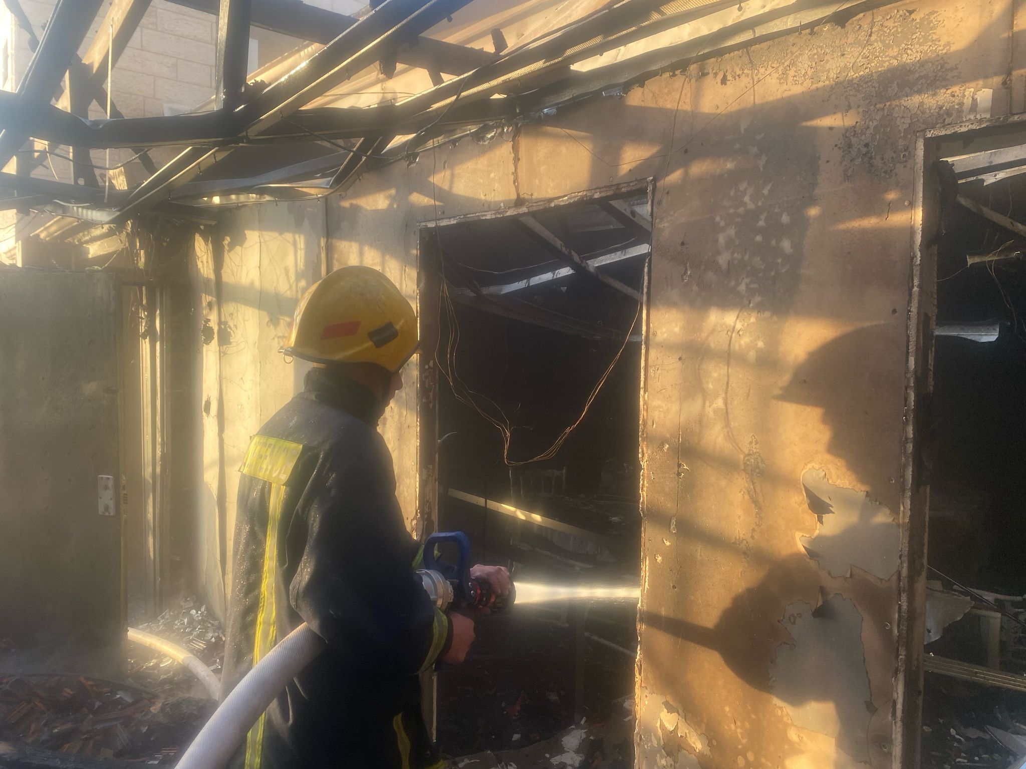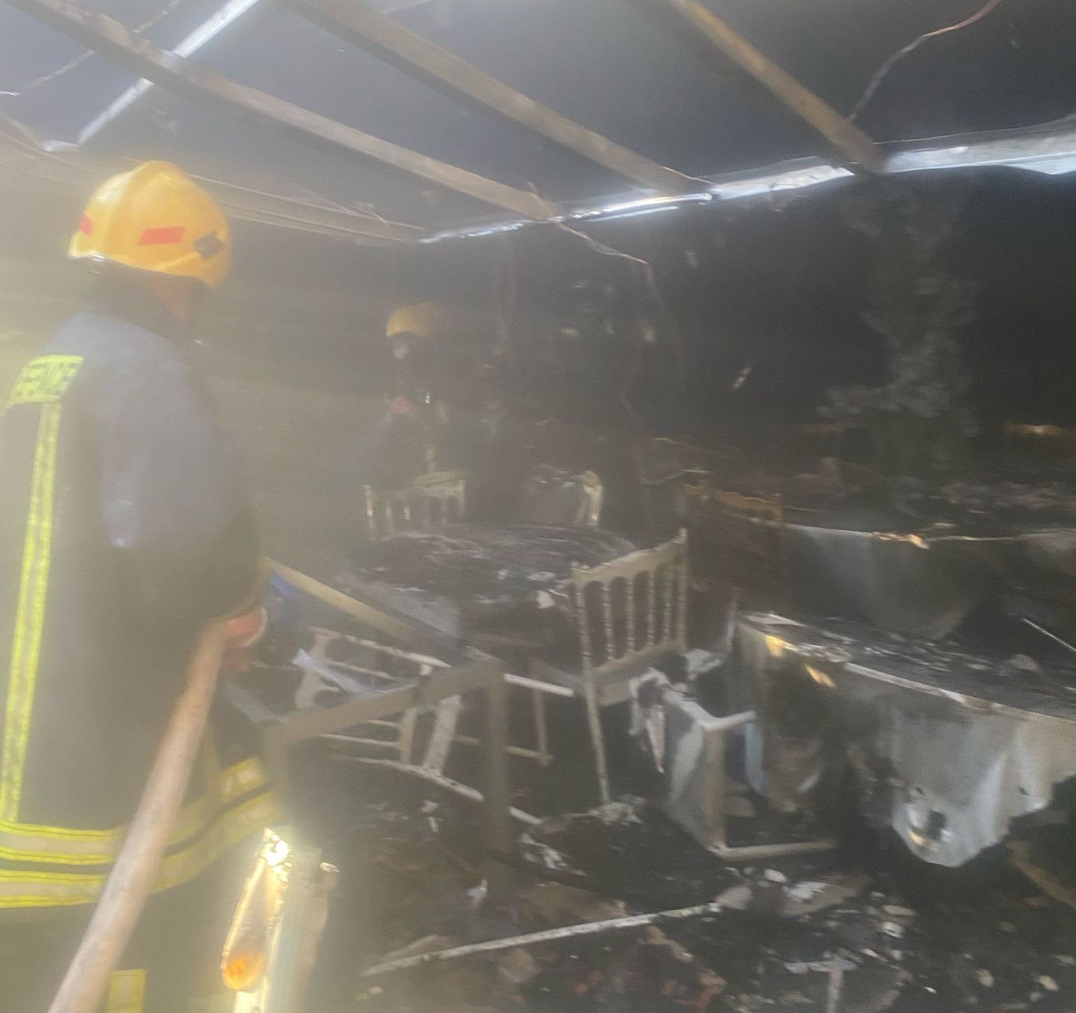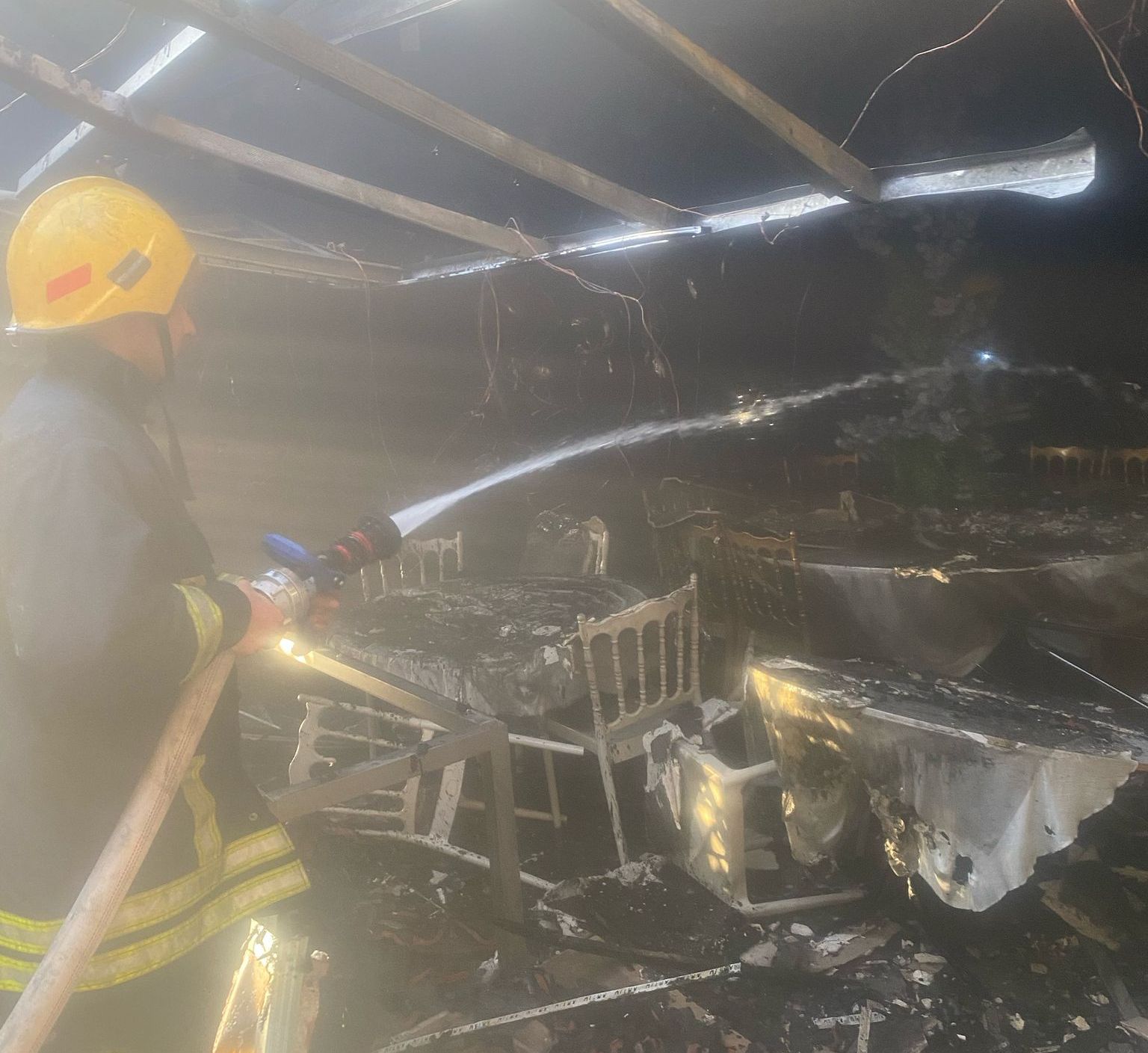 إخماد حريق صالة أفراح في بلدة دار صلاح شرق بيت لحم .