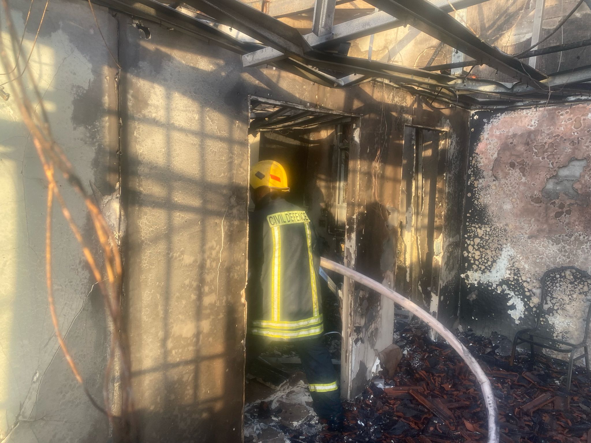 إخماد حريق مخزن أثاث منزلي في مدينة بيت جالا ببيت لحم .