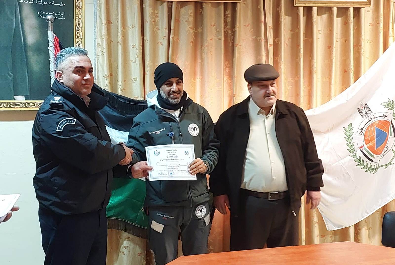 نظمت طواقم مديرية محافظة طولكرم اليوم الأحد 26/01/2025 ، دورة تدريب لفرقتي متطوعين بالشراكة مع مؤسسة الحلم الفلسطيني ووزارة الحكم المحلي ضمن برنامج “شباب من أجل فلسطين” تضمنت علوم الدفاع المدني والوقاية والسلامة العامة .