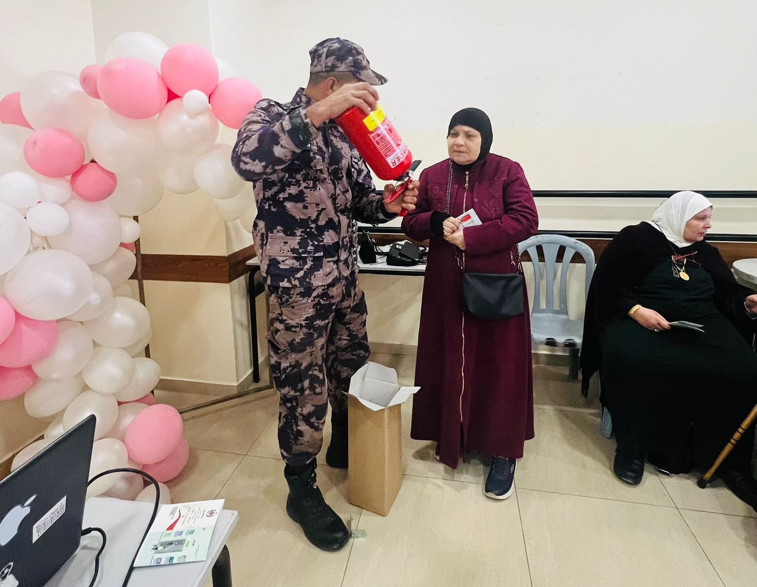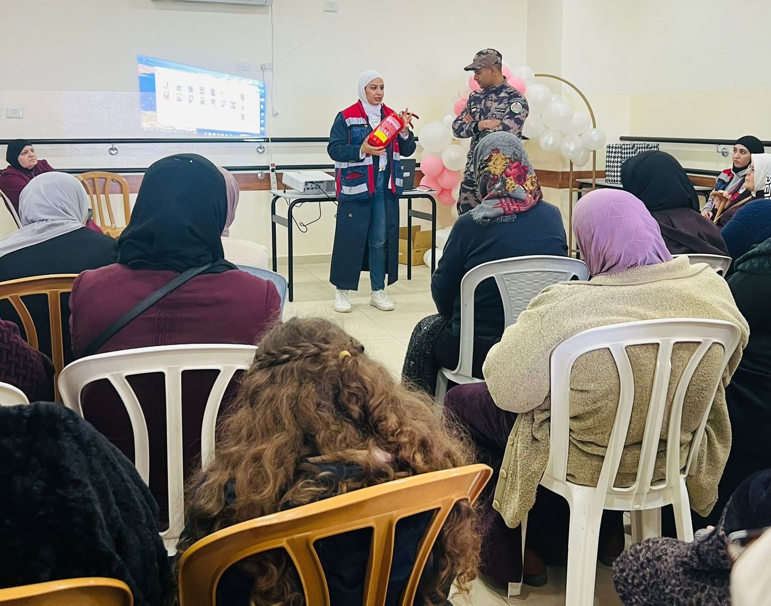 ويأتي هذا النشاط بهدف الوصول إلى كافة مكونات المجتمع الفلسطيني لتعزيز ثقافة السلامة العامة فتم تدريبهن وتعريفهن على اسطوانات الإطفاء اليدوية ومخاطر الغاز المنزلي والكهرباء وكيفية التعامل السليم معها ، وطبيعة عمل رجل الدفاع المدني ومهامه والتلبيغ الصحيح والكامل عن أي طارئ .