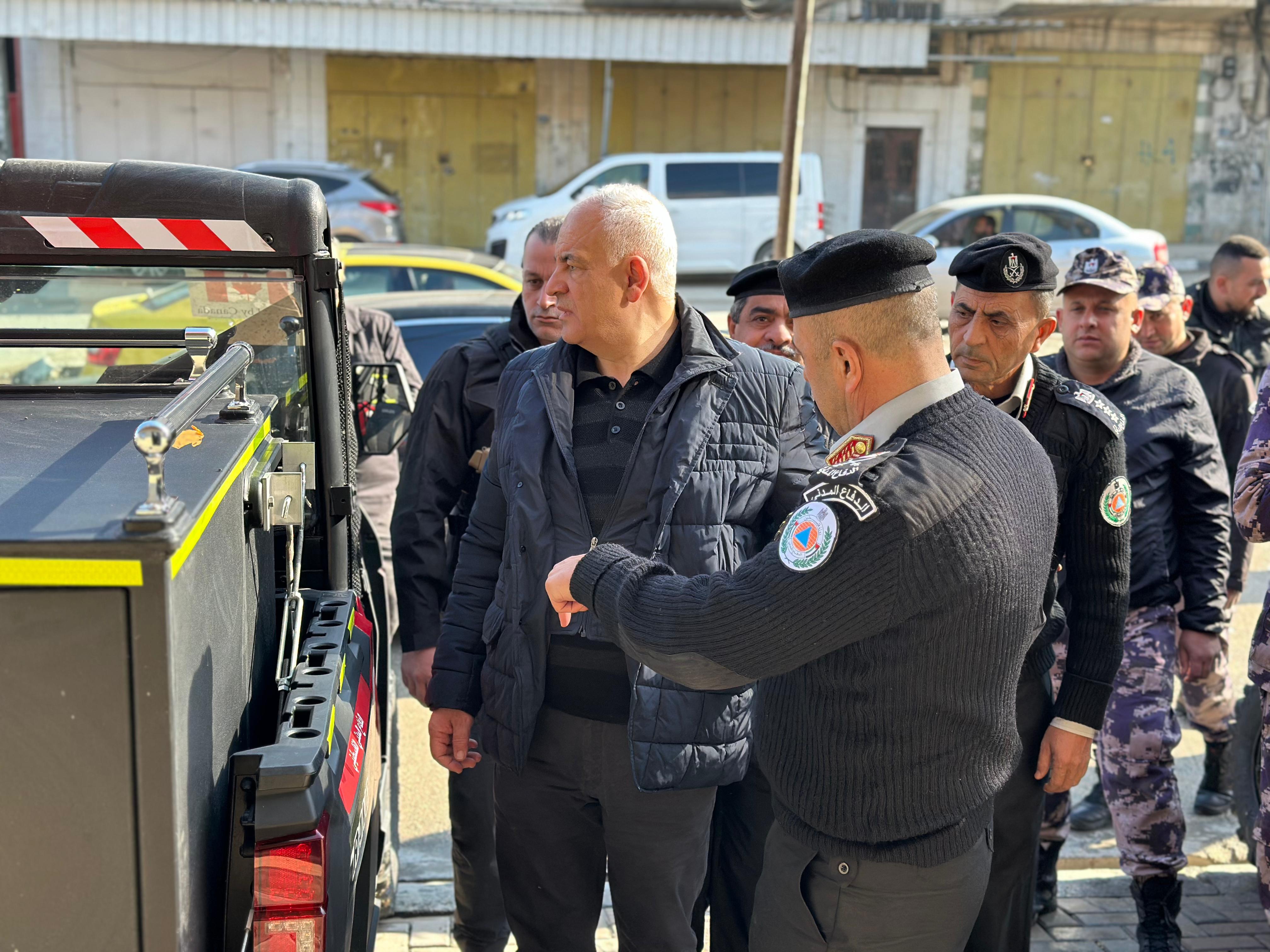 تفقد معالي وزير الداخلية اللواء زياد هب الريح اليوم السبت 21/12/2024 ، ورافقه مدير عام الدفاع المدني اللواء العبد إبراهيم خليل طواقم الدفاع المدني العاملة في محافظة جنين وذلك في مقر المديرية بعد وصول مركبات الدفع الرباعي المخصصة للمناطق الضيقة في المحافظة .