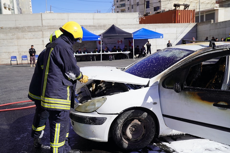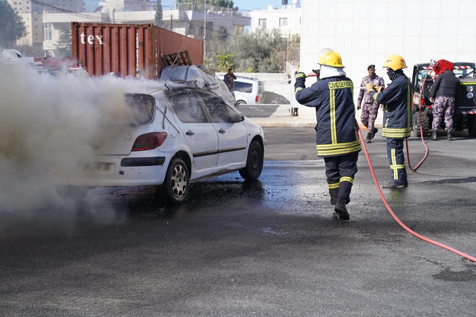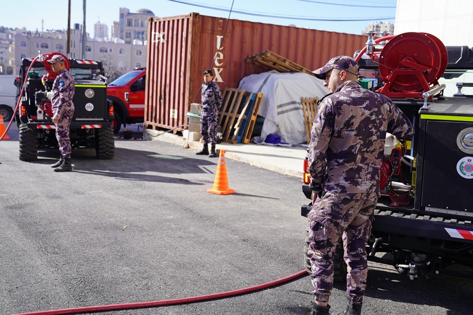 تم تنفيذ سيناريوهات إطفاء في مناطق ضيقة لمركبة وأخشاب مكدسة باستخدام المركبات رباعية الدفاع المخصصة لمثل هذه الحالات .