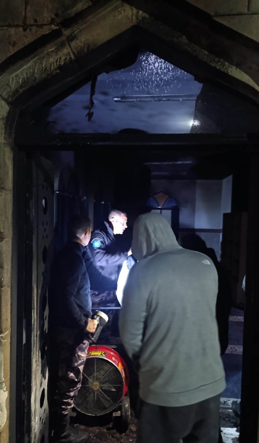 عملت الطواقم على حصر الأضرار والحريق على مدخل المسجد وحماية الممتلكات داخله ومنع إمتداد النيران ووصولها إلى الأماكن المجاورة .