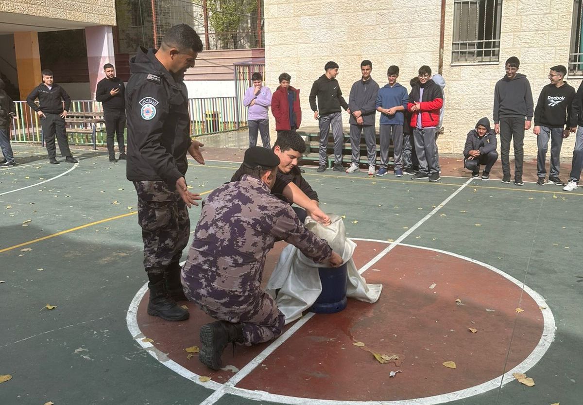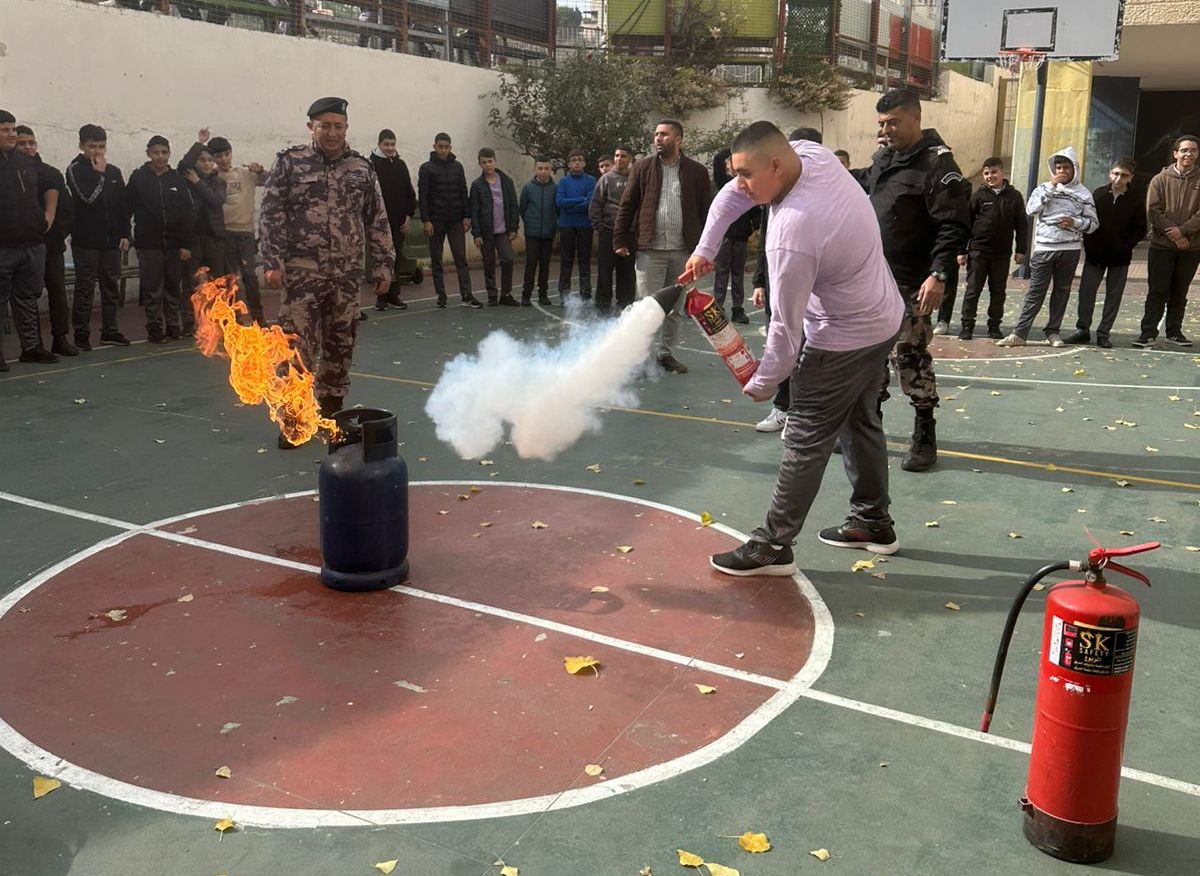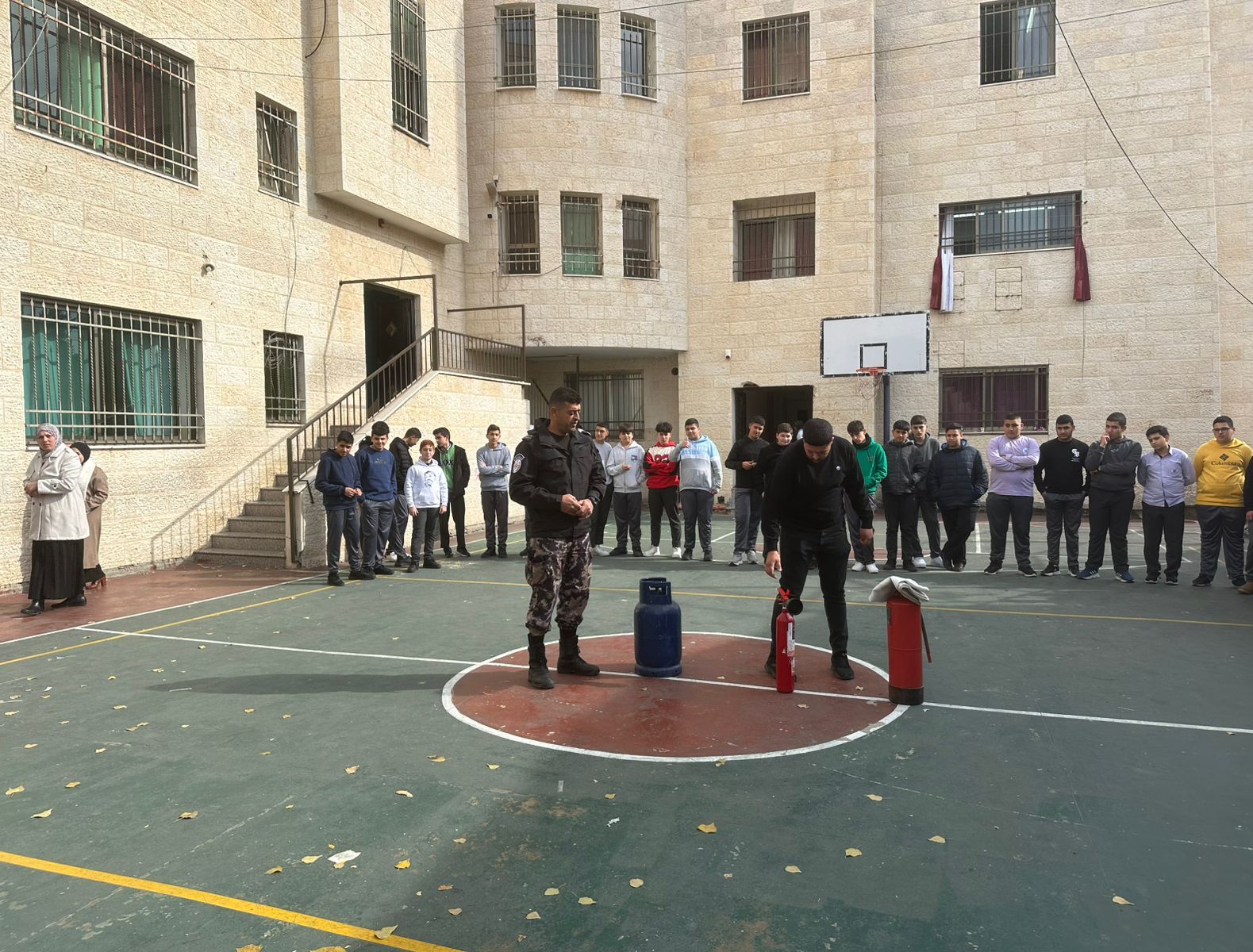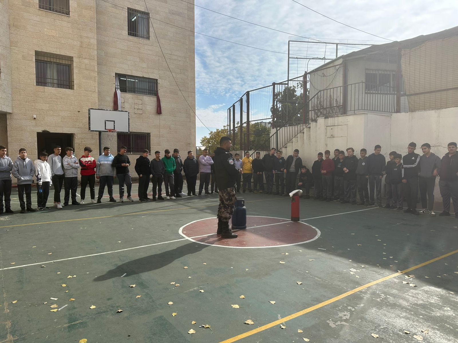 ضم التدريب 80 طالب وطالبة وعدد من الهيئة التدريسية وشمل الجوانب النظرية لعلوم الدفاع المدني وما يرافقها من إطفاء وإنقاذ وإخلاء ووقاية والسلامة المنزلية والتصرف السليم والسلوك الصحيح عند التعامل مع الكوارث الطبيعية وتم تعريفهم على مركبة الإطفاء ومحتواها من معدات وأدوات ومعرفة طبيعة عمل كل معدة ، وتعريفهم بلباس رجل الإطفاء والإطلاع والتدريب على اسطوانات الإطفاء اليدوية ومخاطر الغاز المنزلي والكهرباء وكيفية التعامل السليم معها ، وطبيعة عمل رجل الدفاع المدني ومهامه بمكافحة الحرائق وإنقاذ المواطنين باستخدام المعدات المخصصة وإرشادهم لوقاية أنفسهم من مخاطر الحرائق والحوادث .