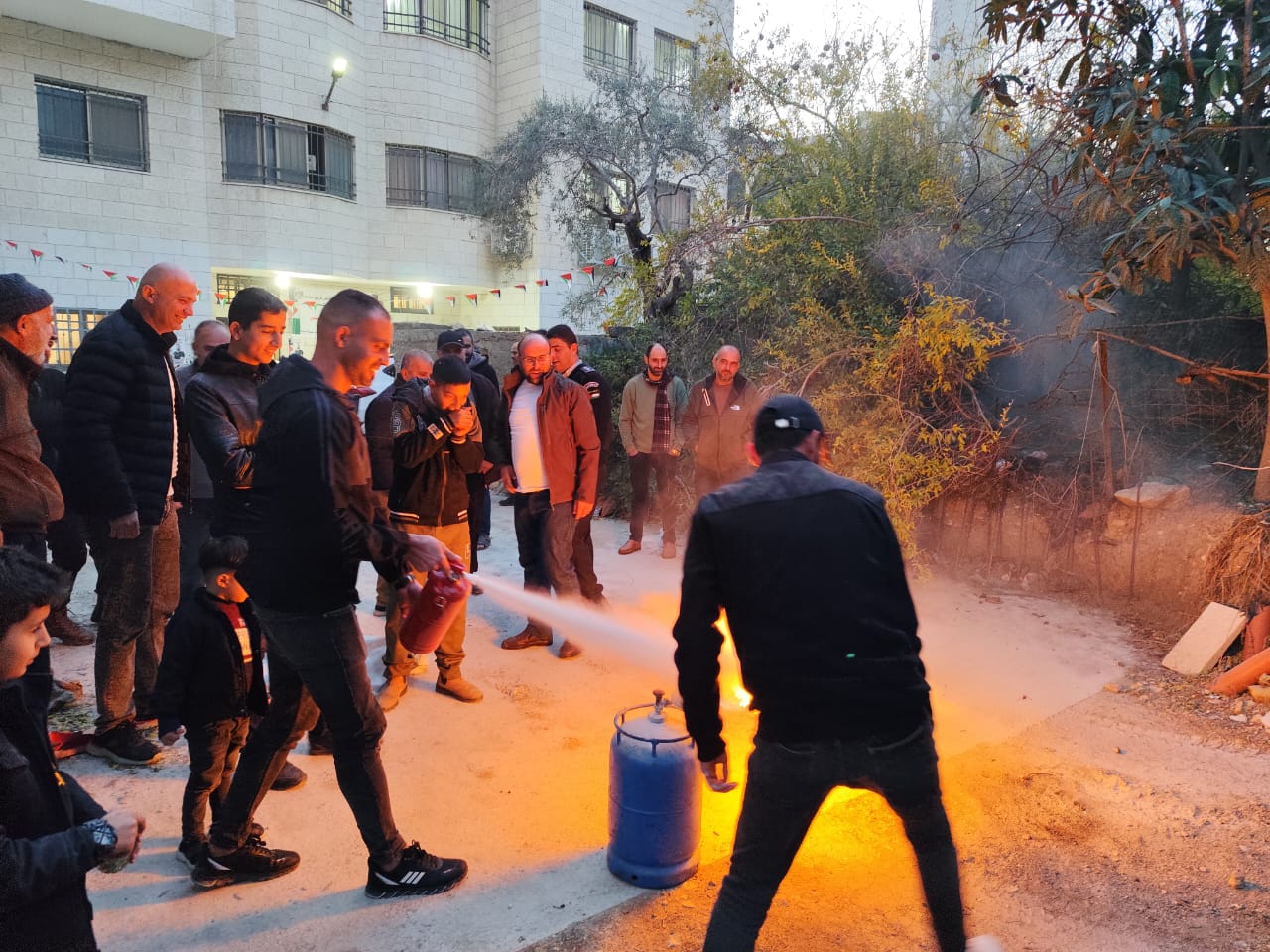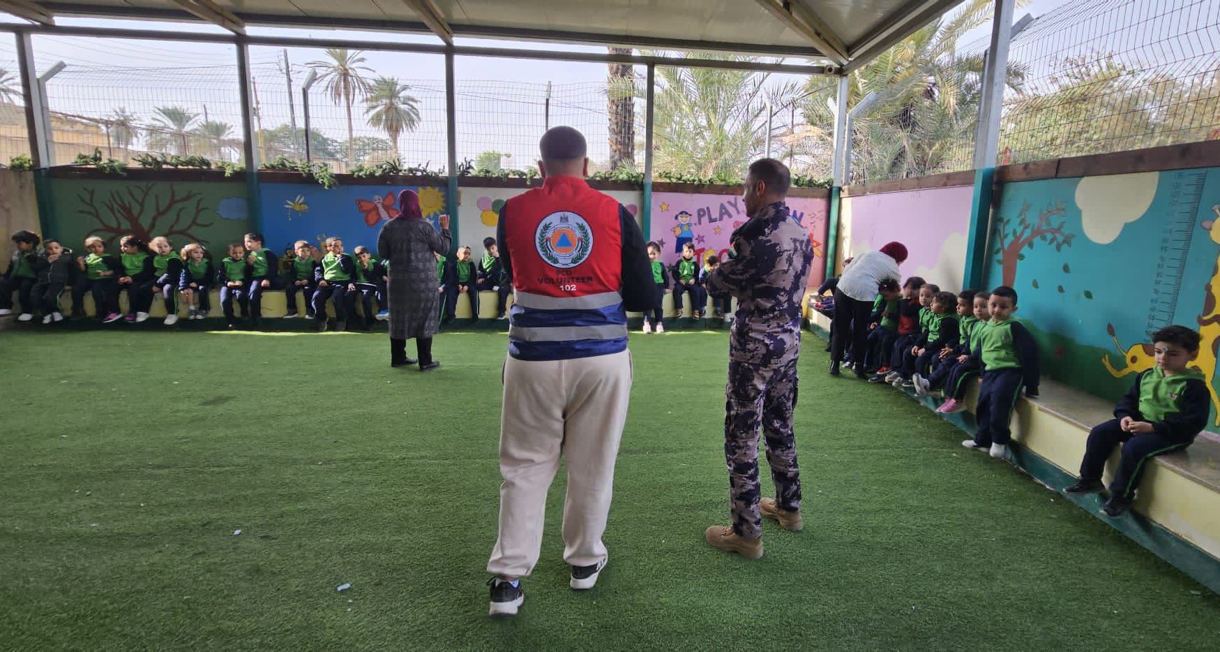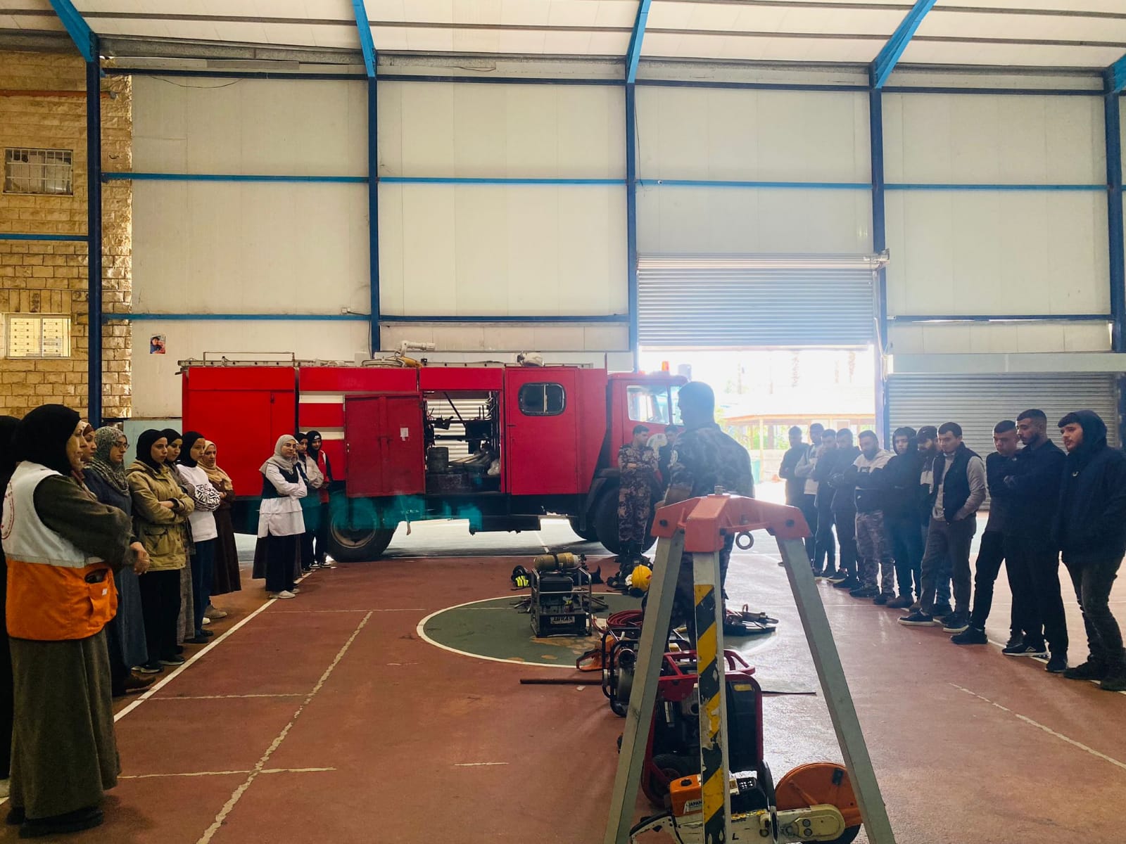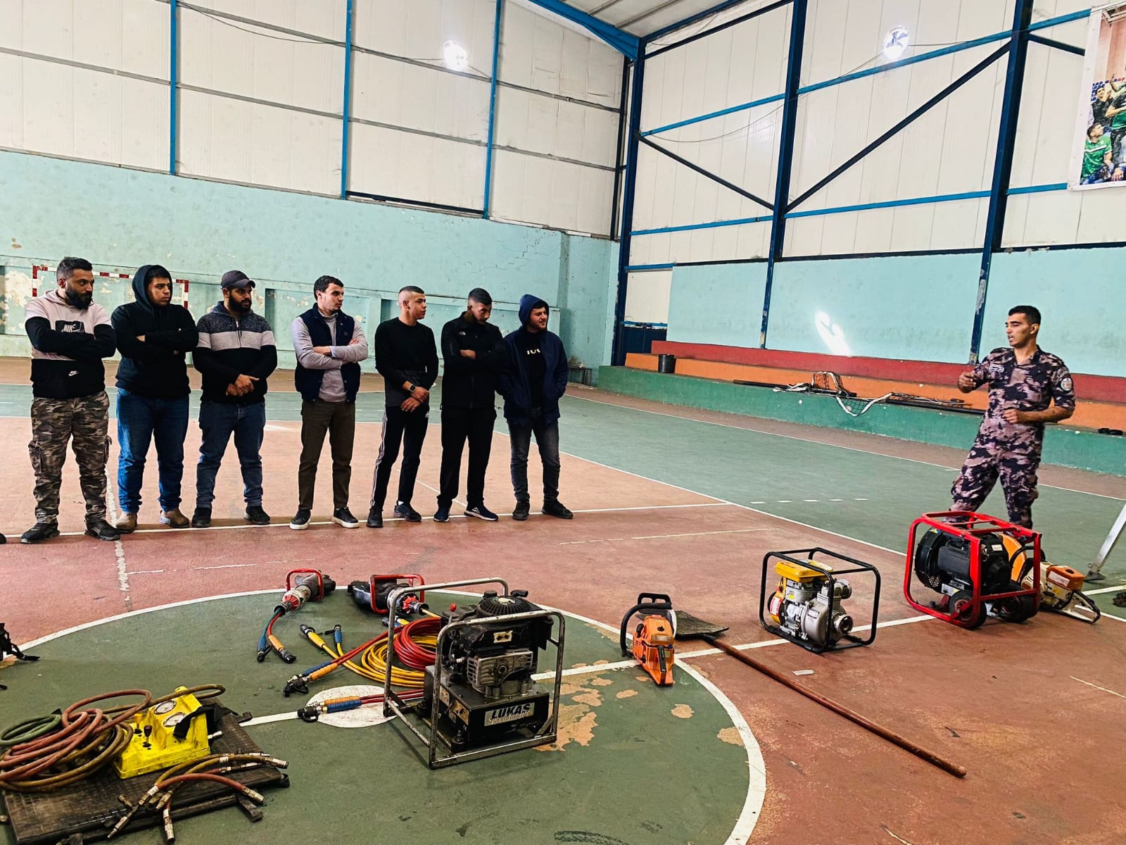ضم التدريب 80 طالب وطالبة وعدد من الهيئة التدريسية وشمل الجوانب النظرية لعلوم الدفاع المدني وما يرافقها من إطفاء وإنقاذ وإخلاء ووقاية والسلامة المنزلية والتصرف السليم والسلوك الصحيح عند التعامل مع الكوارث الطبيعية وتم تعريفهم على مركبة الإطفاء ومحتواها من معدات وأدوات ومعرفة طبيعة عمل كل معدة ، وتعريفهم بلباس رجل الإطفاء والإطلاع والتدريب على اسطوانات الإطفاء اليدوية ومخاطر الغاز المنزلي والكهرباء وكيفية التعامل السليم معها ، وطبيعة عمل رجل الدفاع المدني ومهامه بمكافحة الحرائق وإنقاذ المواطنين باستخدام المعدات المخصصة وإرشادهم لوقاية أنفسهم من مخاطر الحرائق والحوادث .