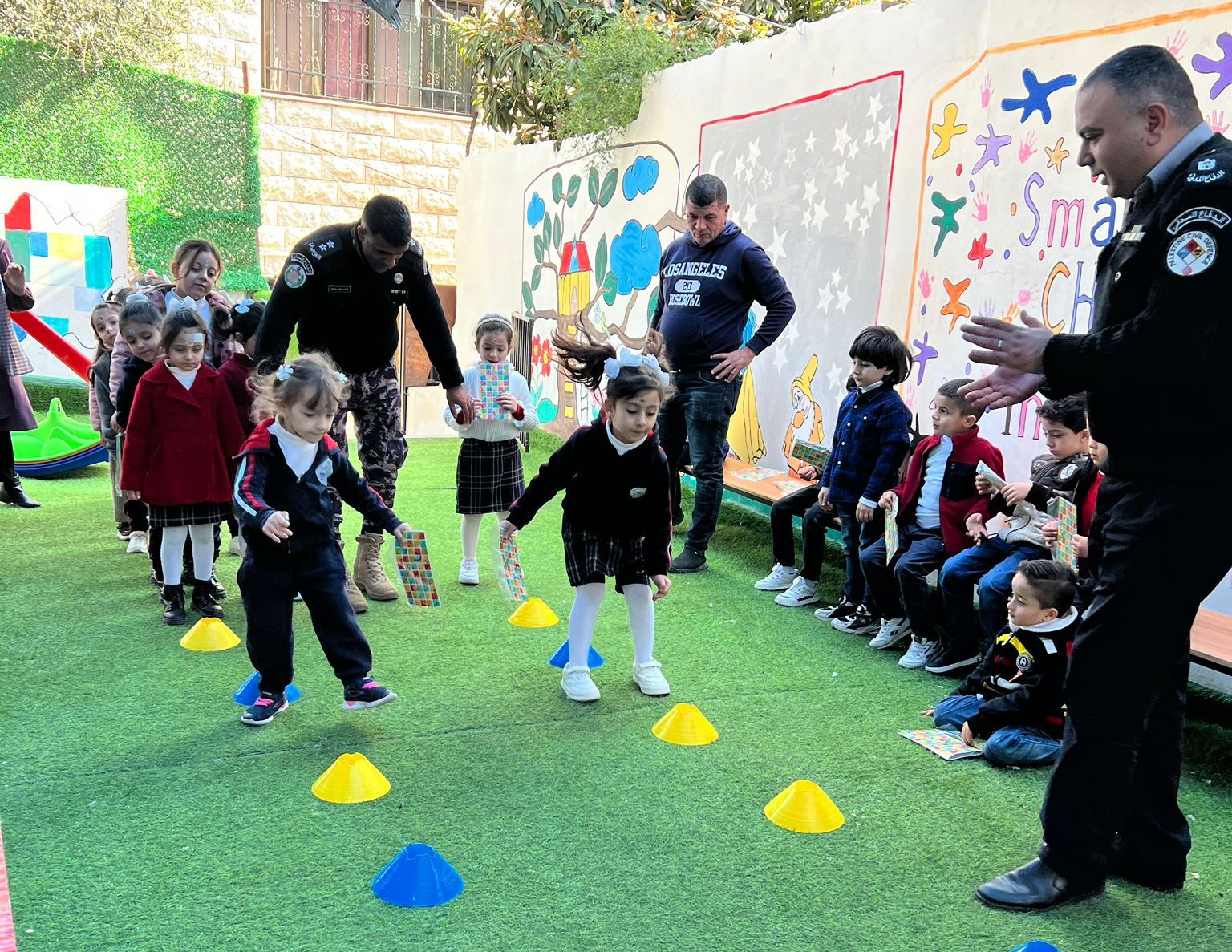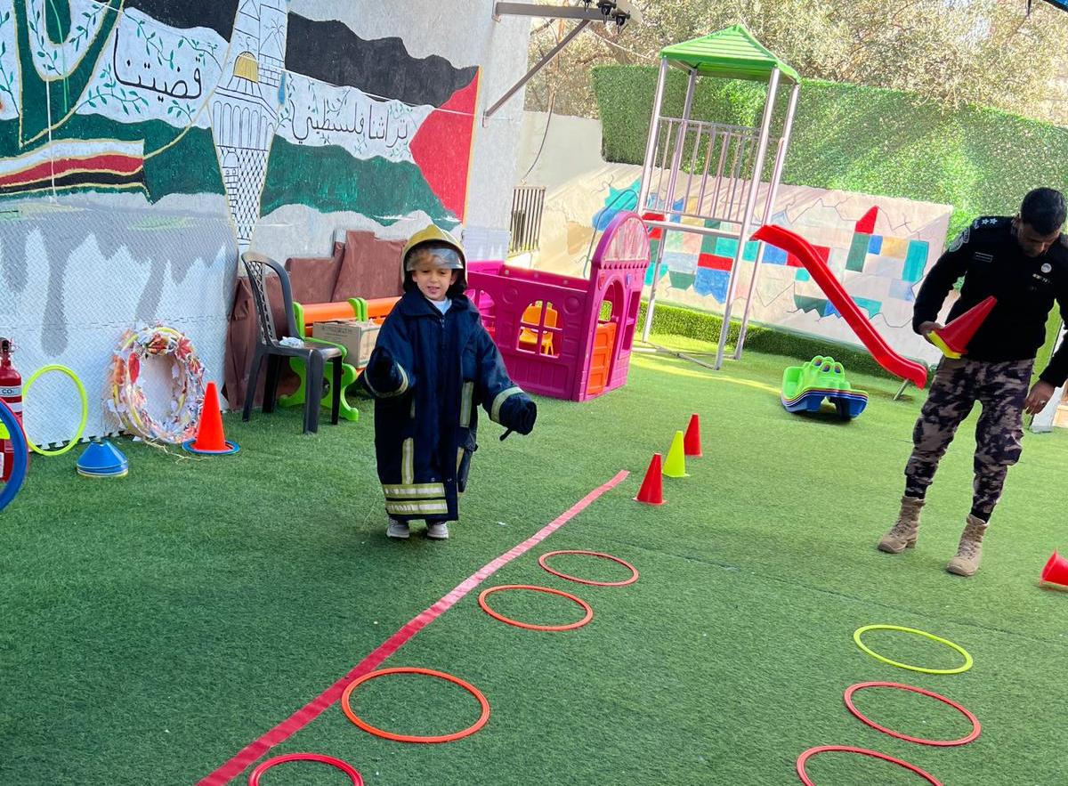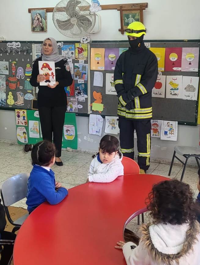 وتم منحهم تدريب حول الإخلاء في حالات الطوارئ ، والحديث عن اسطوانات الغاز ووسائل التدفئة والابتعاد عن اللعب بهما ، عدم إشعال الشمع والحركة بها ومخاطر العبث بالكهرباء .