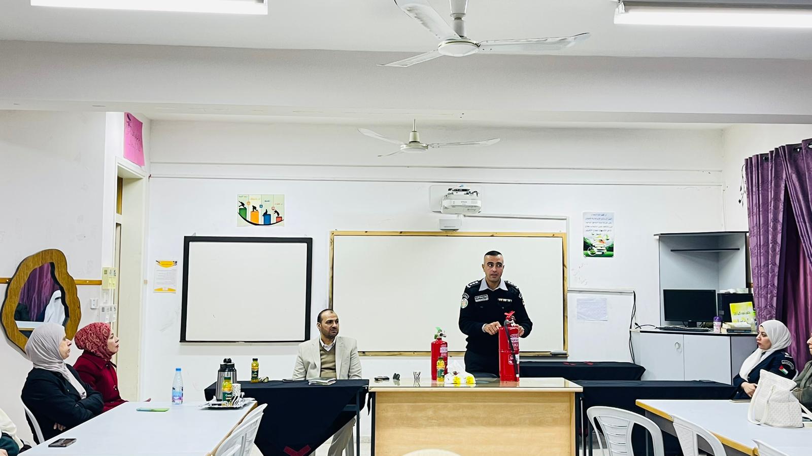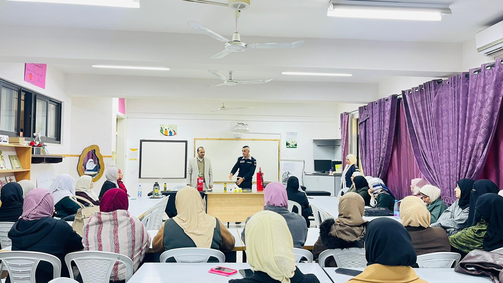 ضم التدريب 98 طالب وطالبة إضافة للهيئة التدريسية وشملت المحاضرة الجوانب النظرية لعلوم الدفاع المدني وما يرافقها من إطفاء وإنقاذ وإخلاء ووقاية والسلامة المنزلية والتصرف السليم والسلوك الصحيح عند التعامل مع الكوارث الطبيعية ، كما تم تعريفهم بلباس رجل الإطفاء والإطلاع والتدريب على اسطوانات الإطفاء اليدوية ومعرفة مخاطر الغاز المنزلي والكهرباء وكيفية التعامل السليم معها والاستخدام الآمن لوسائل التدفئة ومراقبتها بشكل دائم ، وطبيعة عمل رجل الدفاع المدني ومهامه بمكافحة الحرائق وإنقاذ المواطنين باستخدام المعدات المخصصة وتخلل نشاط توعوي لطلاب الروضة اشتمل على توزيع مجسمات مركبة إطفاء وإرشادهم لوقاية أنفسهم من مخاطر الحرائق والحوادث .