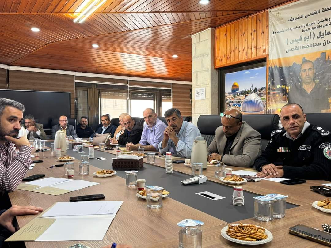 ترأس الاجتماع نائب عطوفة محافظ محافظة القدس الدكتور عبد الله صيام وبمشاركة قادة المؤسسة الأمنية في المحافظة وممثلين عن الهيئات المحلية والرسمية ، مؤكداً على أهمية دور لجنة الطوارئ في المحافظة ، لا سيما في ظل التطورات المحلية والإقليمية الخطيرة ، مشيرا الى ضرورة اخذ كافة الاحتياطات وجهوزية مؤسسات المحافظة الرسمية والأهلية لأي طارئ قد يحدث وتقديم كافة الخدمات والإمكانات المتاحة في سبيل حماية أرواح وممتلكات المواطنين .